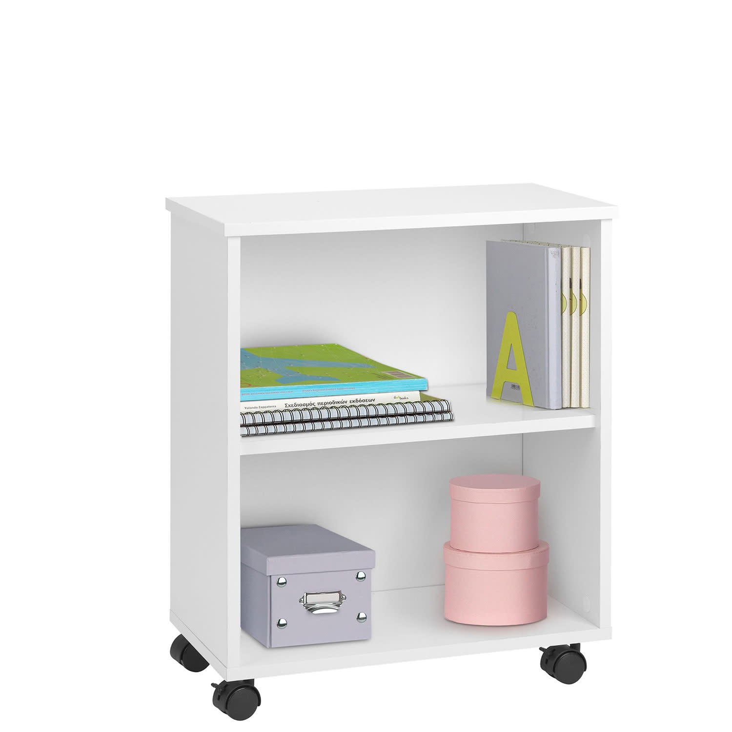 Μια βολική, ευρύχωρη και τροχήλατη ραφιέρα σε δύο χρώματα, που διαθέτει δύο άνετα ράφια και ταιριάζει σε όλα τα δωμάτια.