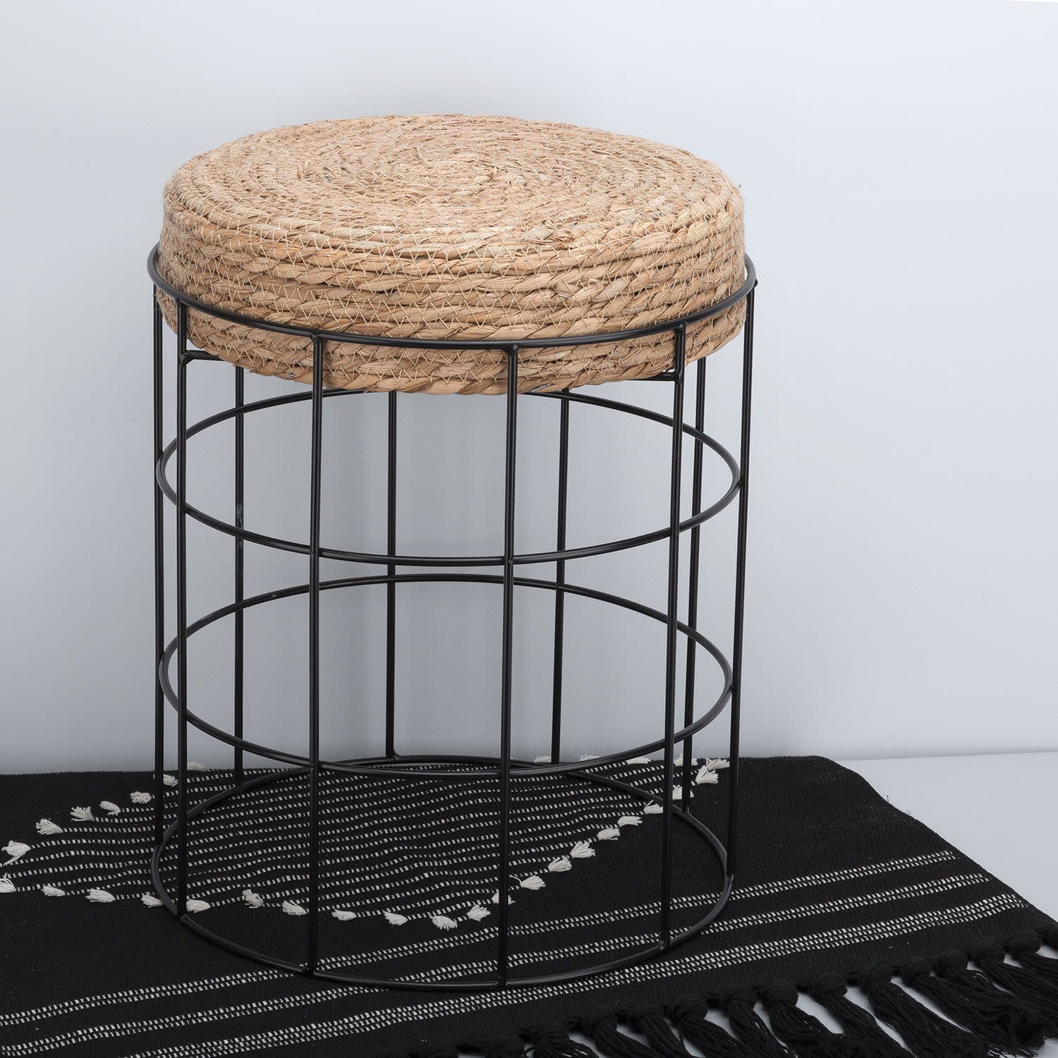 Το σκαμό industrial είναι η ιδανική επιλογή για το χώρο σου. Διαθέτει μεταλλική πλέξη στη βάση του και κάθισμα με πλέξη ψάθας και είναι η τέλεια προσθήκη στη διακόσμηση του δωματίου, του σαλονιού, της κουζίνας, του γραφείου ακόμα και του μπαλκονιού σου. Θα ταιριάξει άρτια σε χώρους boho ή industrial αισθητικής.