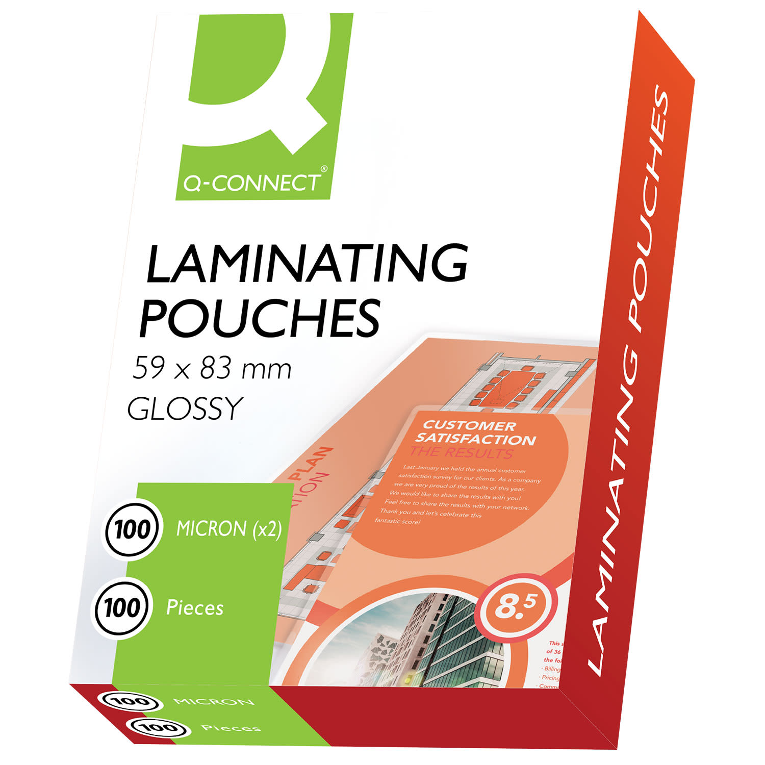 Οι Q-Connect κάρτες πλαστικοποίησης είναι κατάλληλες για χρήση σε όλες τις μηχανές θερμής πλαστικοποίησης. Mε πάχος 2x100micron, πλαστικοποιούν χαρτί μεγέθους 59x83 mm εξασφαλίζοντας μόνιμη προστασία και στεγανότητα. Η συσκευασία περιλαμβάνει 100 τεμάχια.
