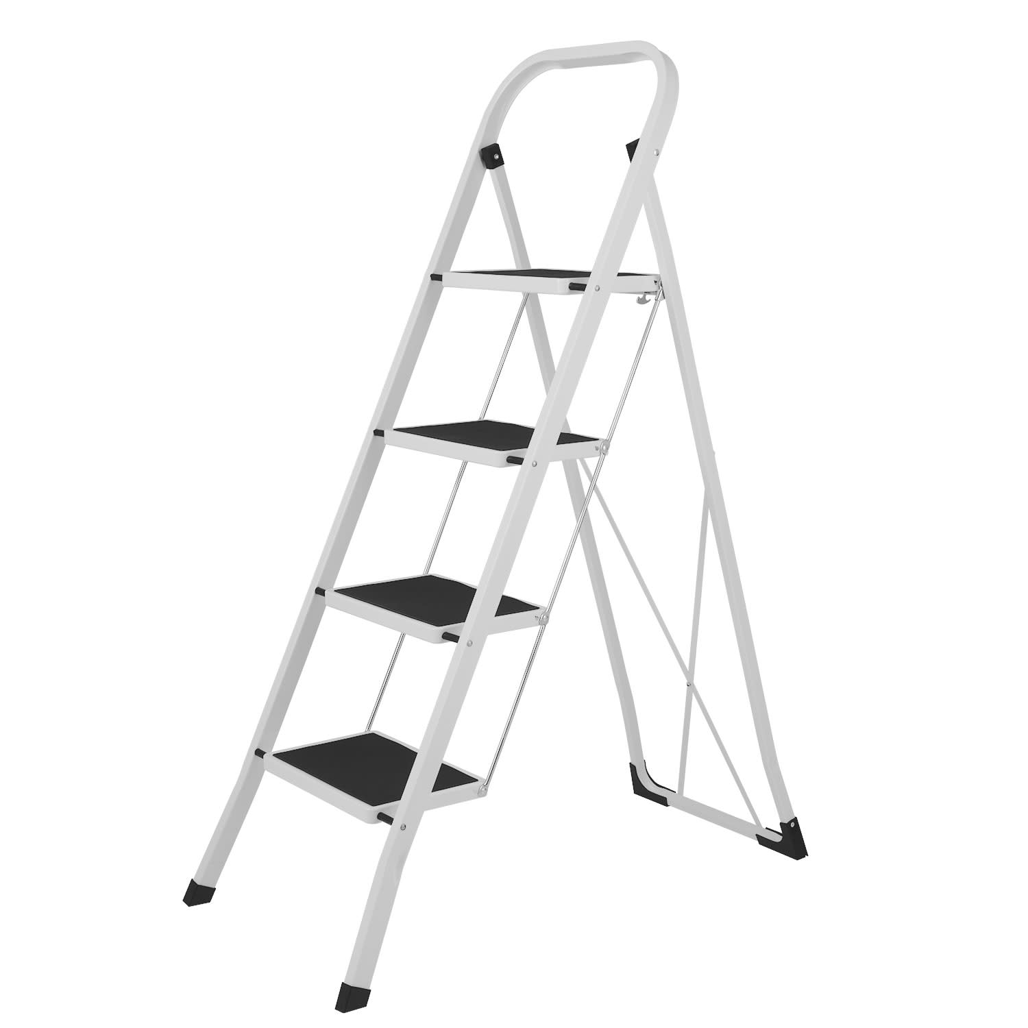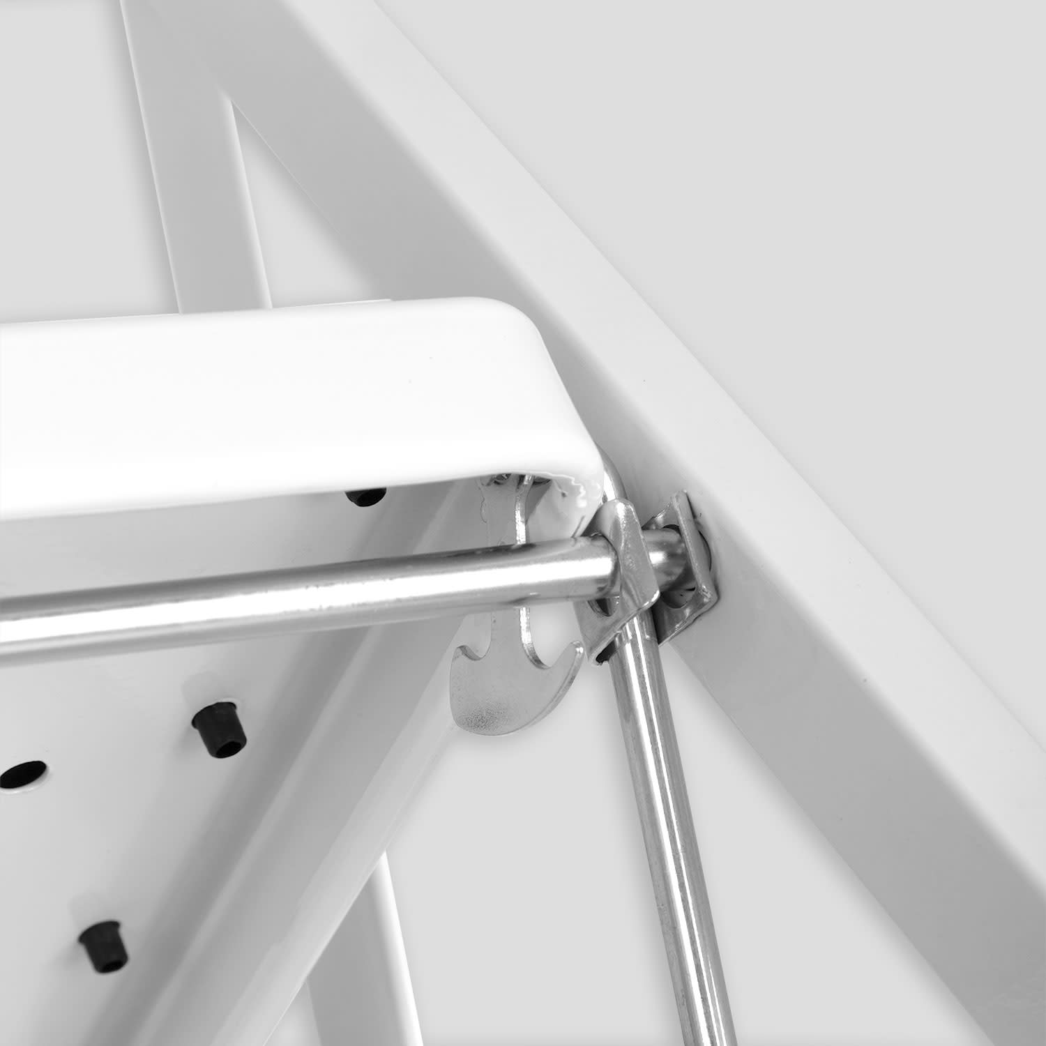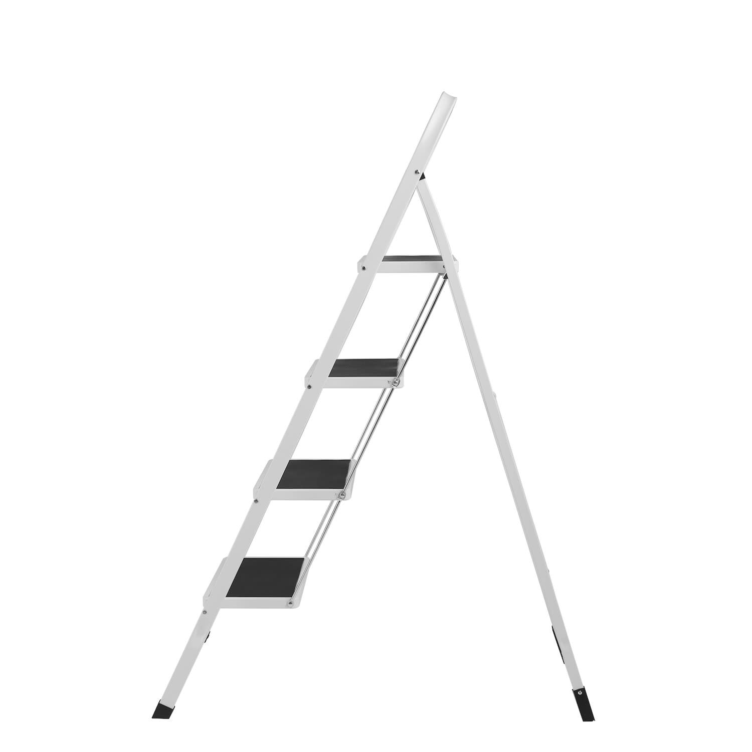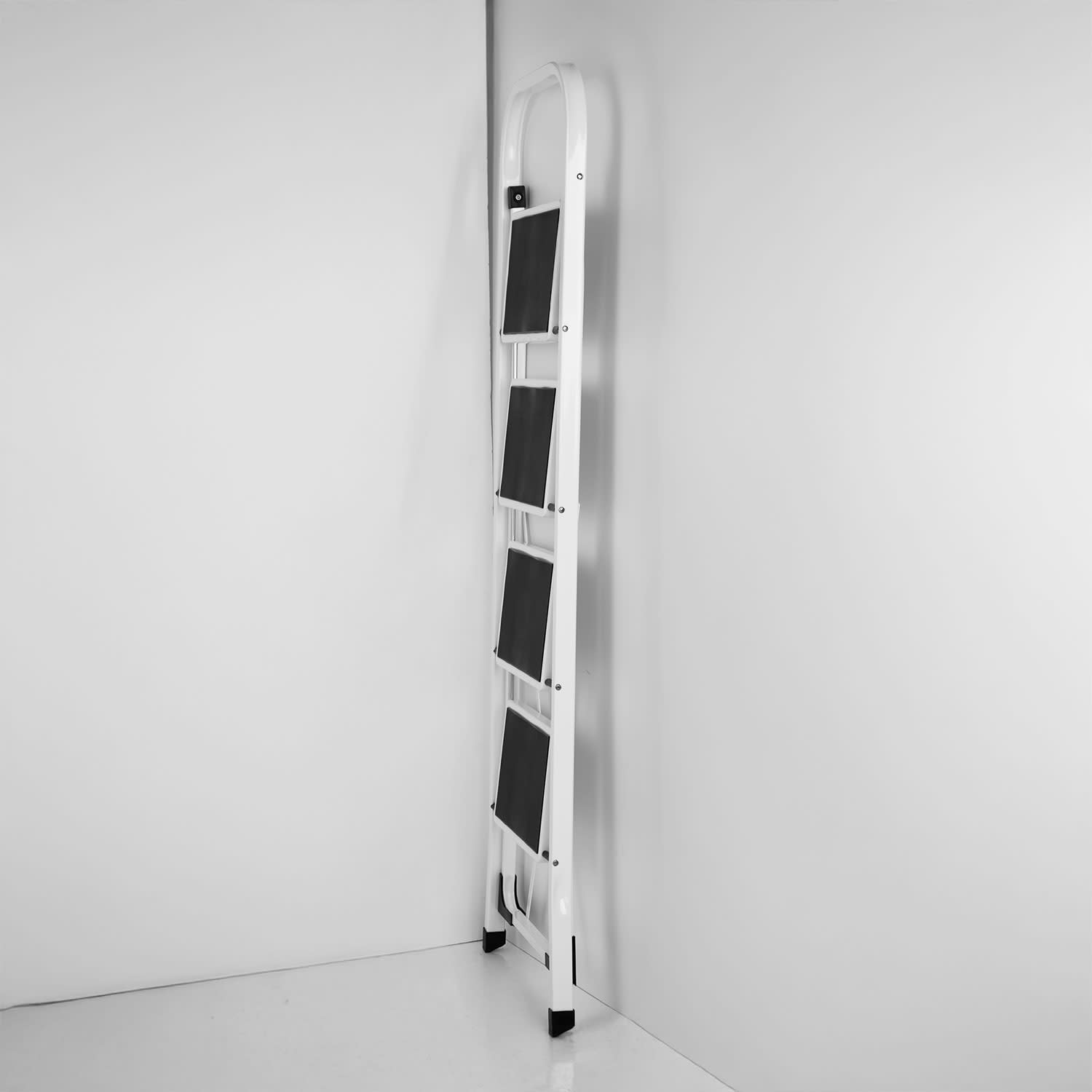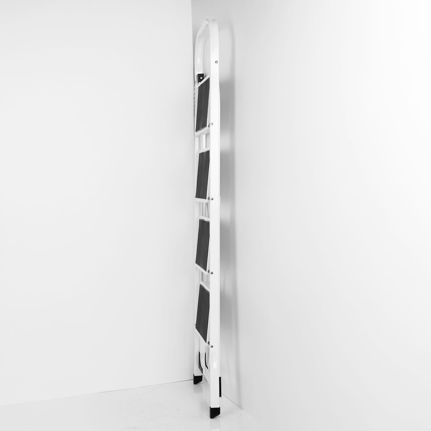 Διαθέτει εργονομική χειρολαβή στο πάνω μέρος για άνετο πιάσιμο και εύκολη μεταφορά, ενώ τα αντιολισθητικά πέλματα στη βάση και τα φαρδιά σκαλοπάτια (30 cm) εξασφαλίζουν άνεση και ασφάλεια σε κάθε σου βήμα. Δεν γλιστράει, δεν τρεμοπαίζει — νιώθεις σιγουριά, είτε αλλάζεις μια λάμπα, είτε πιάνεις το τελευταίο κουτί στο ντουλάπι.