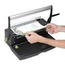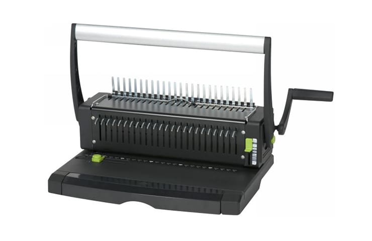 Υψηλής απόδοσης φορητή χειροκίνητη μηχανή, εύκολη στην χρήση. Η δυνατότητα διάτρησης της φτάνει τα 25 φύλλα και το μέγιστο μέγεθος σπιράλ που δέχεται είναι 51mm.Διαθέτει: