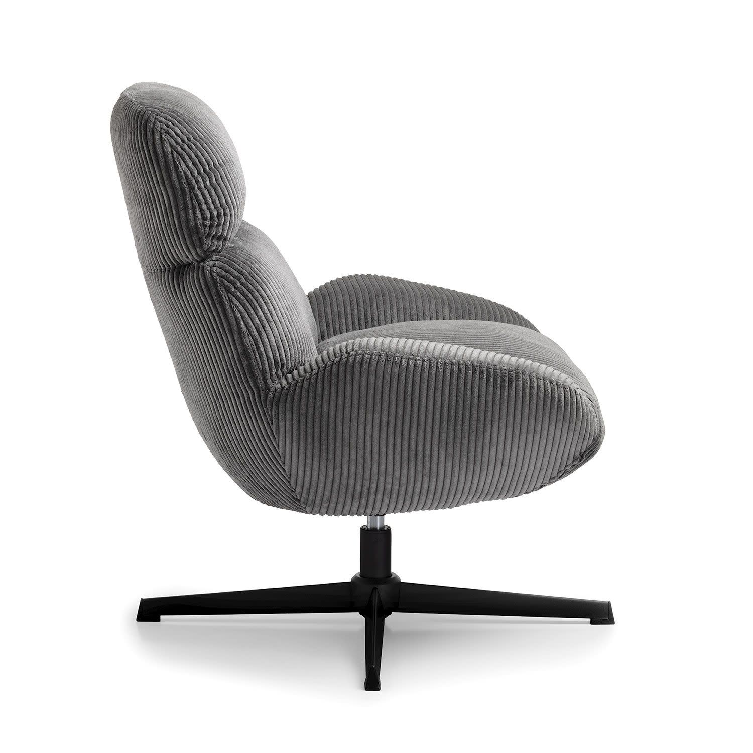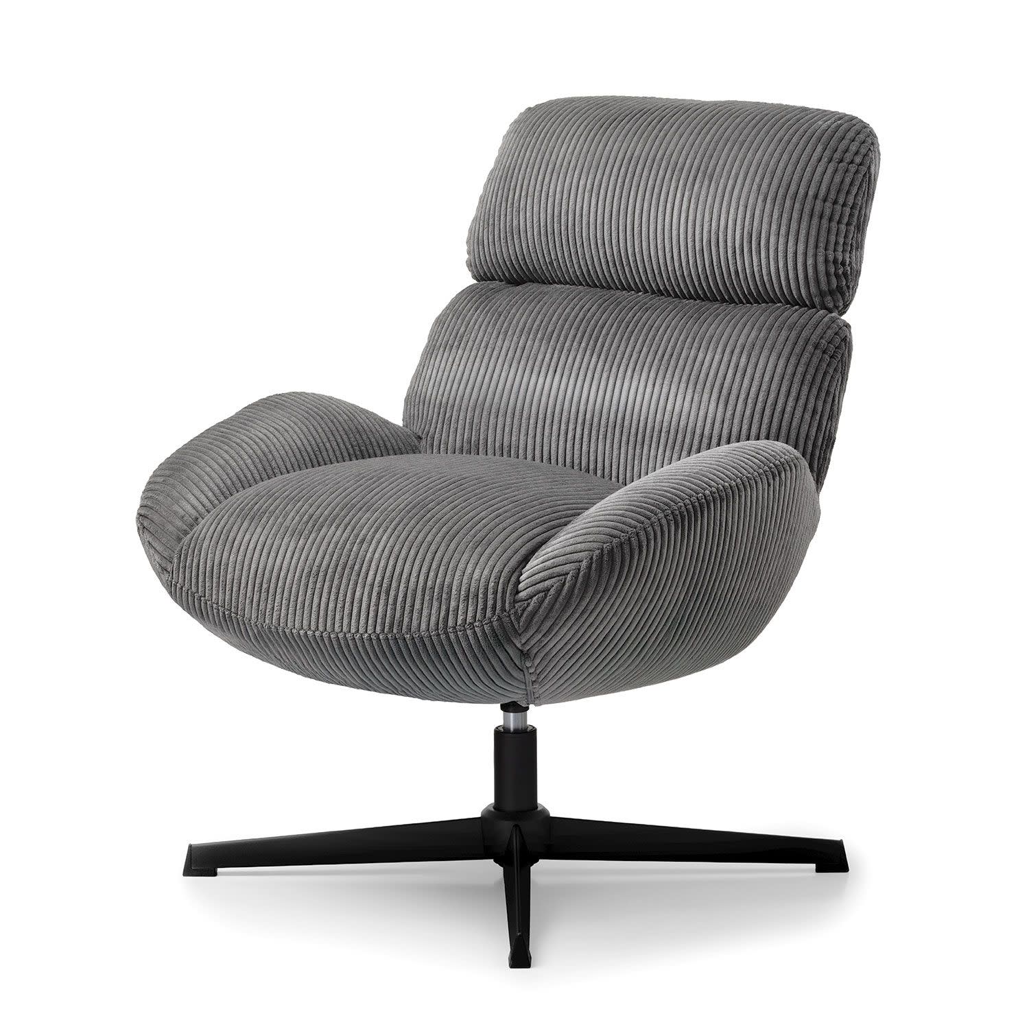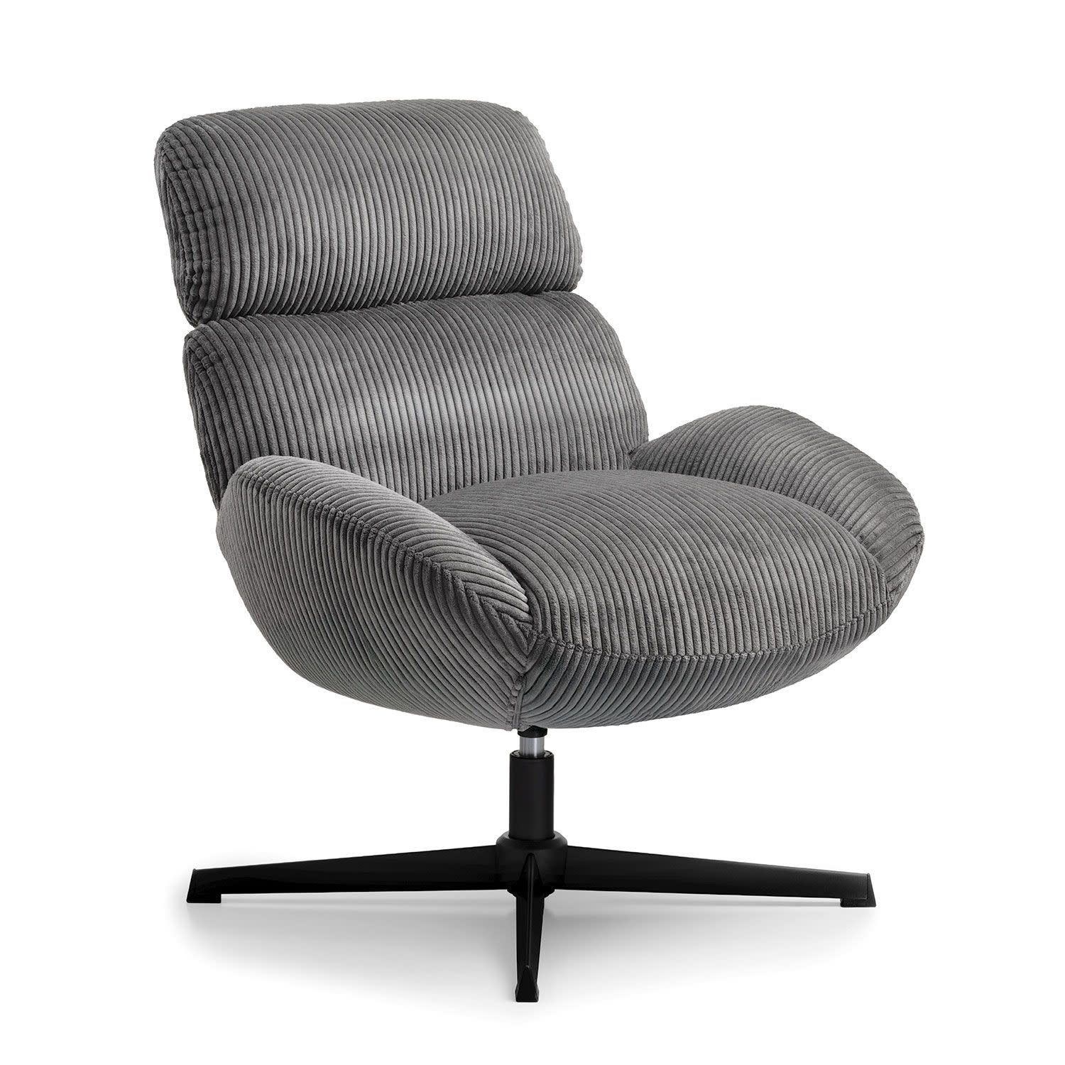 Η πολυθρόνα Cocoon σε γκρι χρώμα διαθέτει απαλό ύφασμα, αφρώδες υλικό και εργονομική στήριξη – κι όλα αυτά σε ένα στιλάτο, περιστρεφόμενο design.