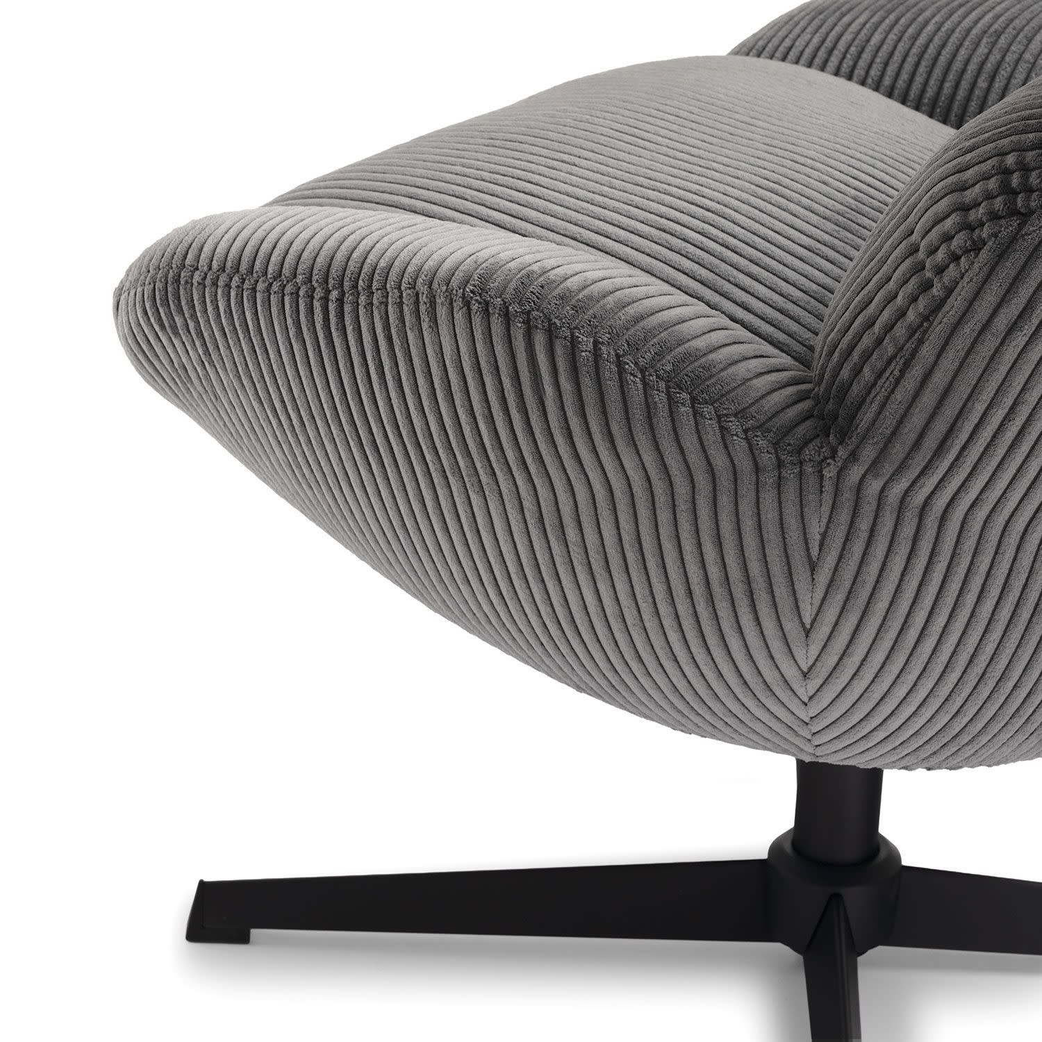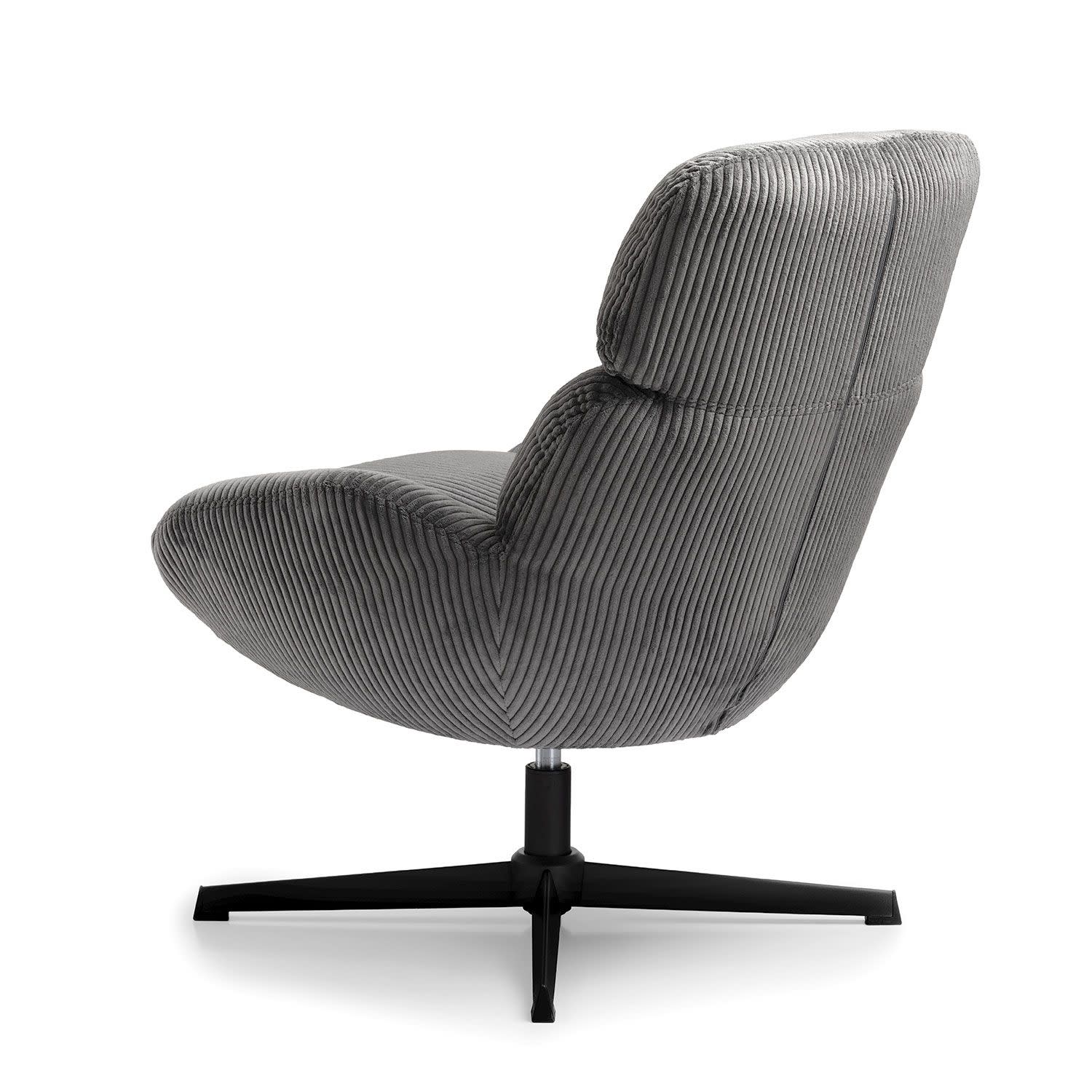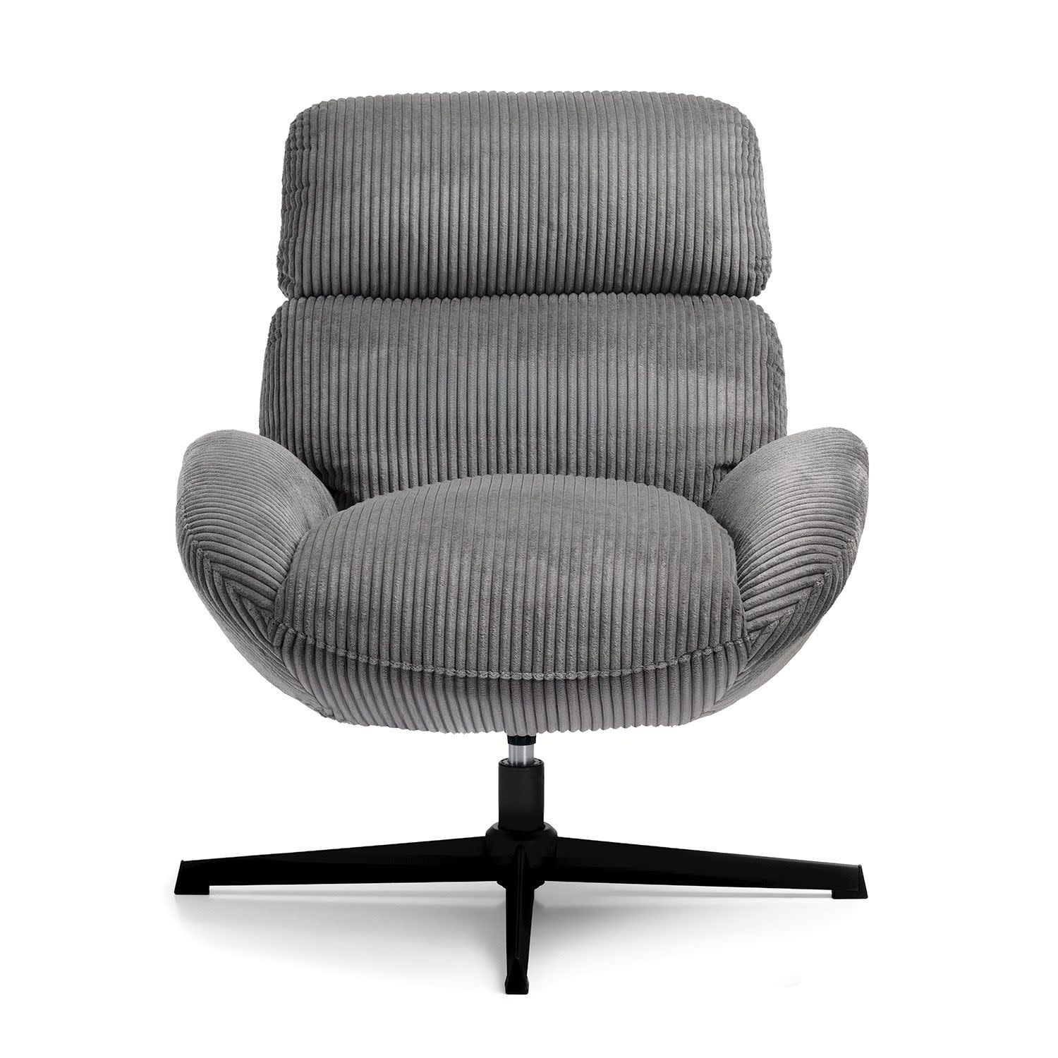 Η πολυθρόνα Cocoon σε γκρι χρώμα διαθέτει απαλό ύφασμα, αφρώδες υλικό και εργονομική στήριξη – κι όλα αυτά σε ένα στιλάτο, περιστρεφόμενο design.
