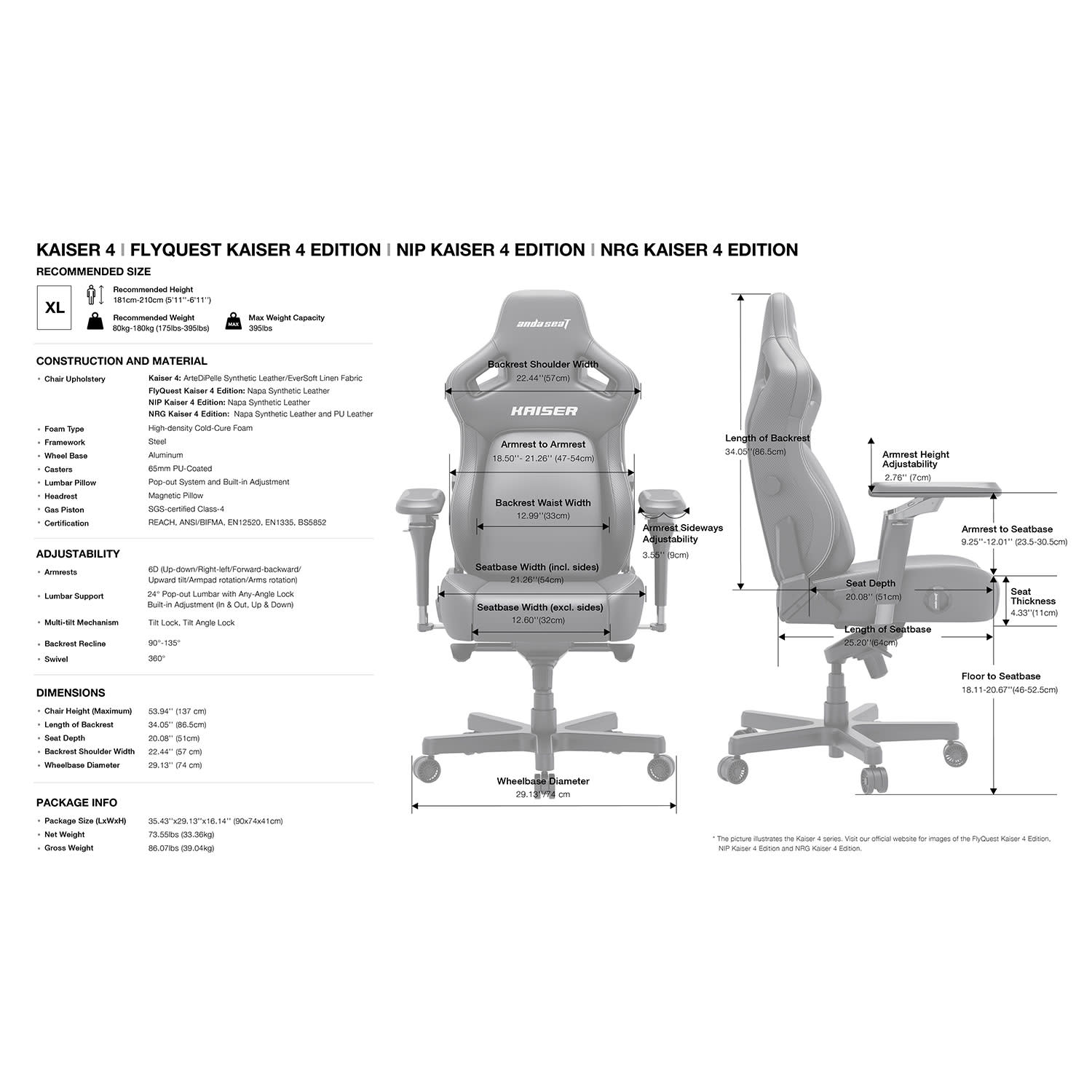Η καρέκλα Anda Seat XL Black Kaiser IV V2 είναι μια εξαιρετική επιλογή για όσους αναζητούν άνεση και εργονομία στον χώρο εργασίας ή το gaming. Διαθέτει μαγνητικό μαξιλάρι κεφαλής, ευρύ κάθισμα από αφρό υψηλής πυκνότητας και δυνατότητα ανάκλησης από 90° έως 135° με λειτουργία ταλάντωσης 15°. Η στιβαρή κατασκευή της, με ενισχυμένη βάση, προσφέρει σταθερότητα και αντοχή.