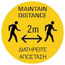 Πινακίδα σήμανσης για τη τήρηση των αναγκαίων αποστάστεων σε κοινούς χώρους, επαγγελματικούς χώρους, χώρους εστίασης αλλά και σημεία που εμφανίζουν συνωντισμό. Η πινακίδα έχει σκοπό την υπόδειξη της αναγκαίας απόστασης των 2m που πρέπει να τηρούνται μεταξύ των παρευρισκόμενων στο χώρο.