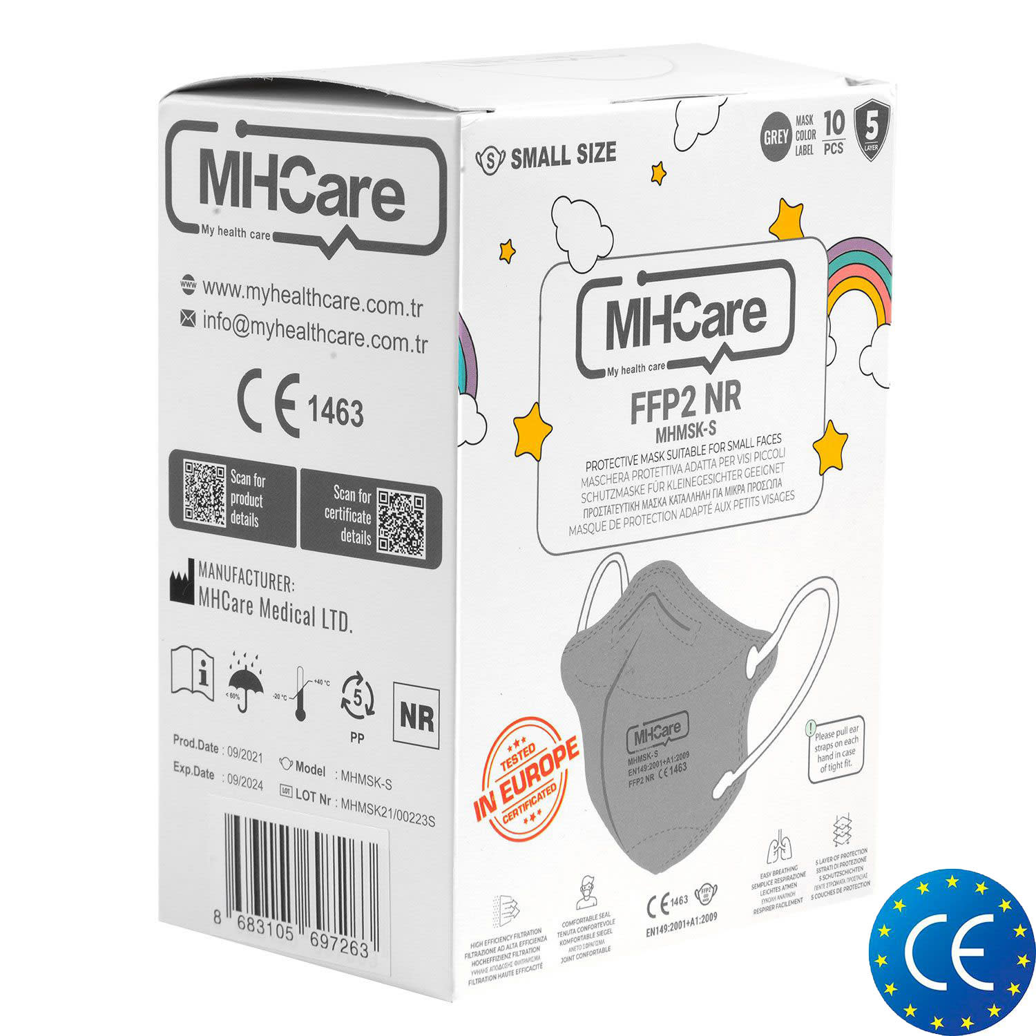 Γκρι μάσκα μιας χρήσης FFP2 σε συσκευασία 10 τεμαχίων σε παιδικό μέγεθος για τους μικρούς μας φίλους.