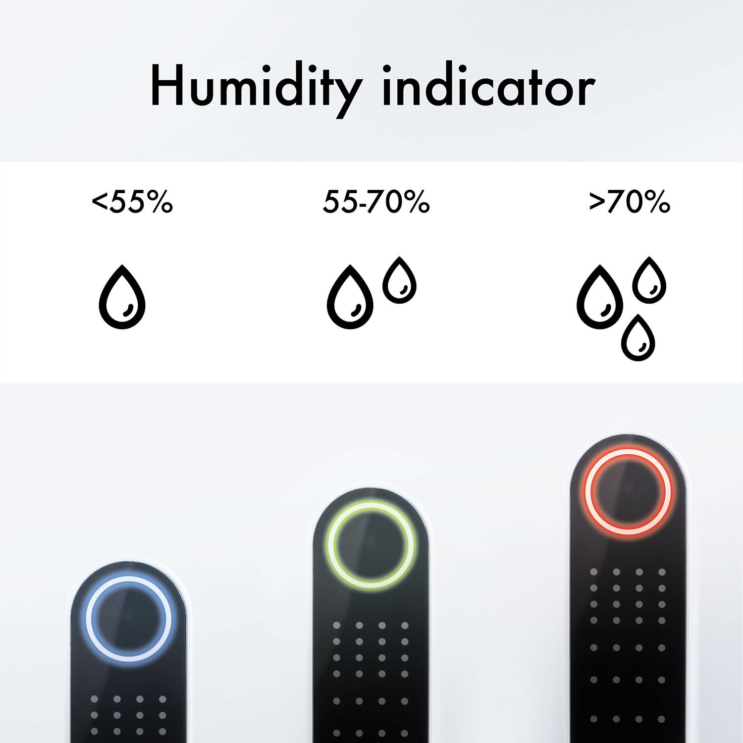 Ο καινούριος σου αφυγραντήρας λειτουργεί έξυπνα, για να σε προειδοποιεί! Οι τρεις διαφορετικοί δείκτες φωτισμού σε διαφορετικούς χρωματισμούς (πράσινο, μπλε, κόκκινο) σε ενημερώνουν για κάθε επίπεδο υγρασίας. Πριν προλάβει η υδάτινη απειλή να κυριεύσει το δωμάτιό σου, λάβε τα μέτρα σου και ενίσχυσε τη λειτουργία της συσκευής.