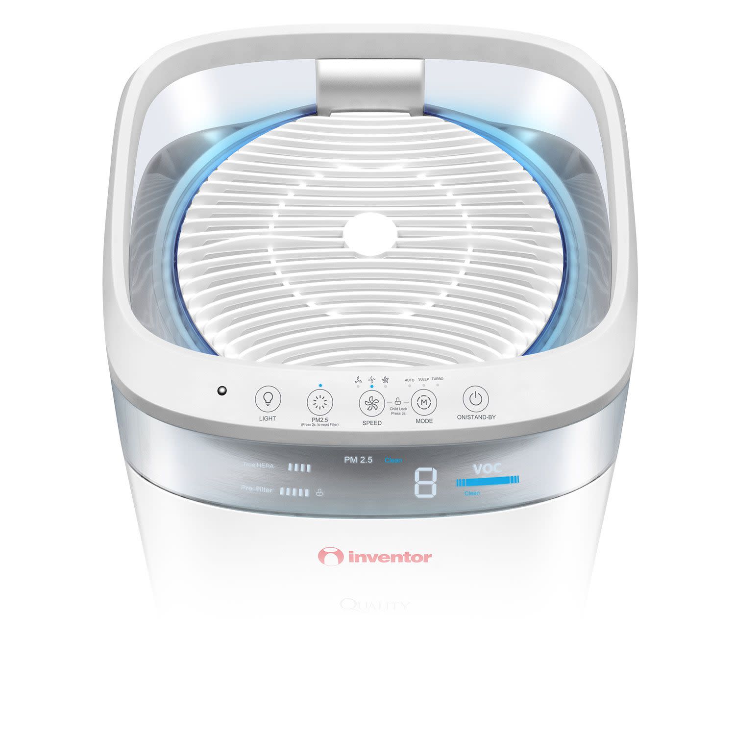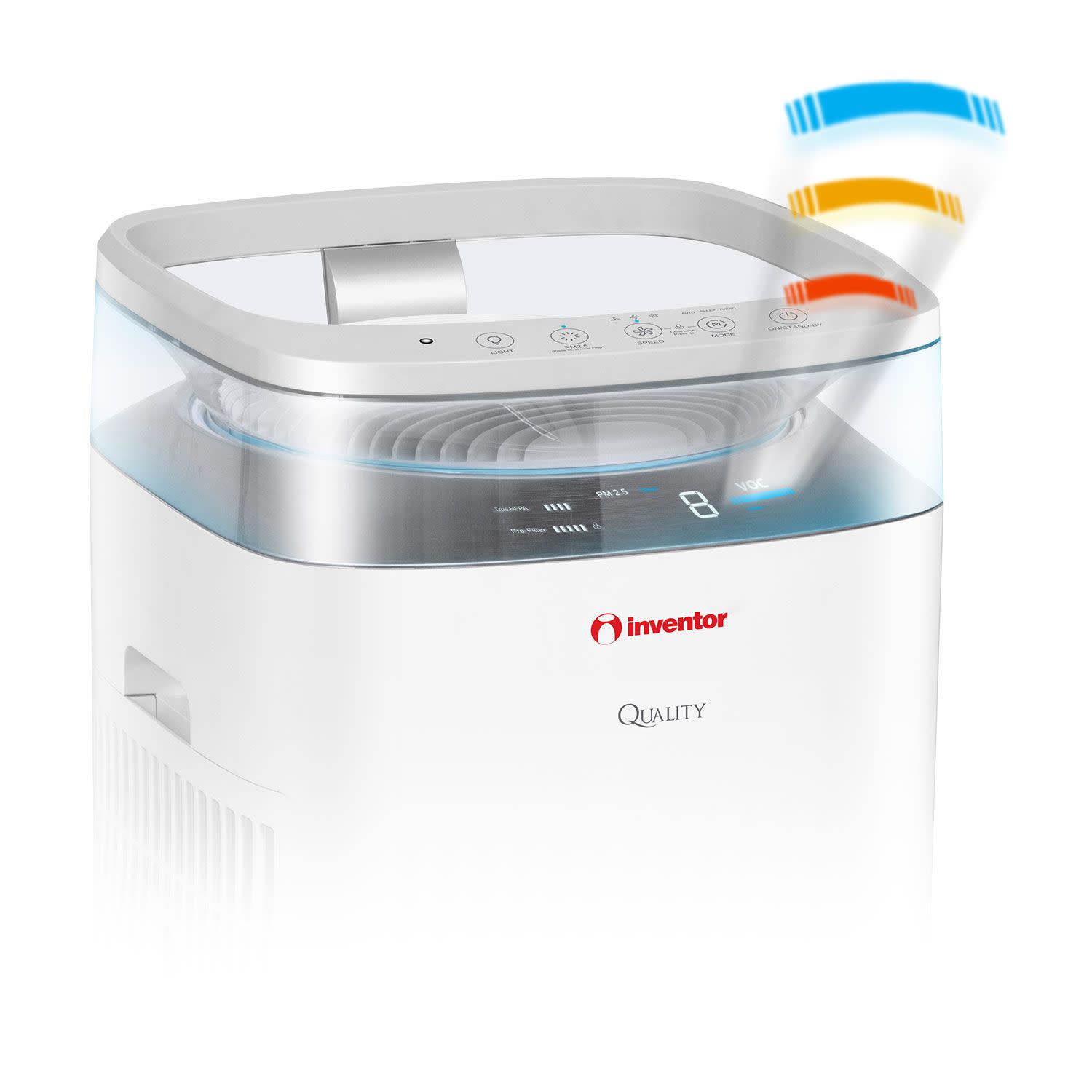 Υγιεινό περιβάλλον με τη βοήθεια του αυτού του Inventor καθαριστή-ιονιστή με κάλυψη χώρων έως 80m2, δείκτη ποιότητας και 3 αισθητήρες που ελέγχουν διαρκώς τις συνθήκες του χώρου που βρίσκεται