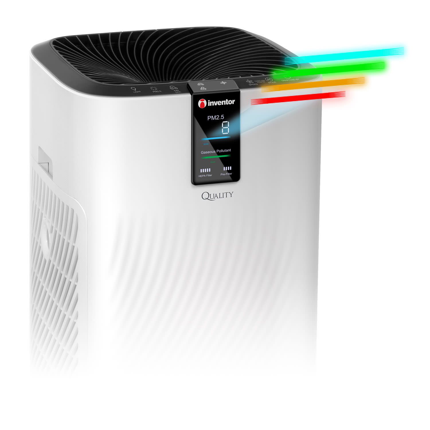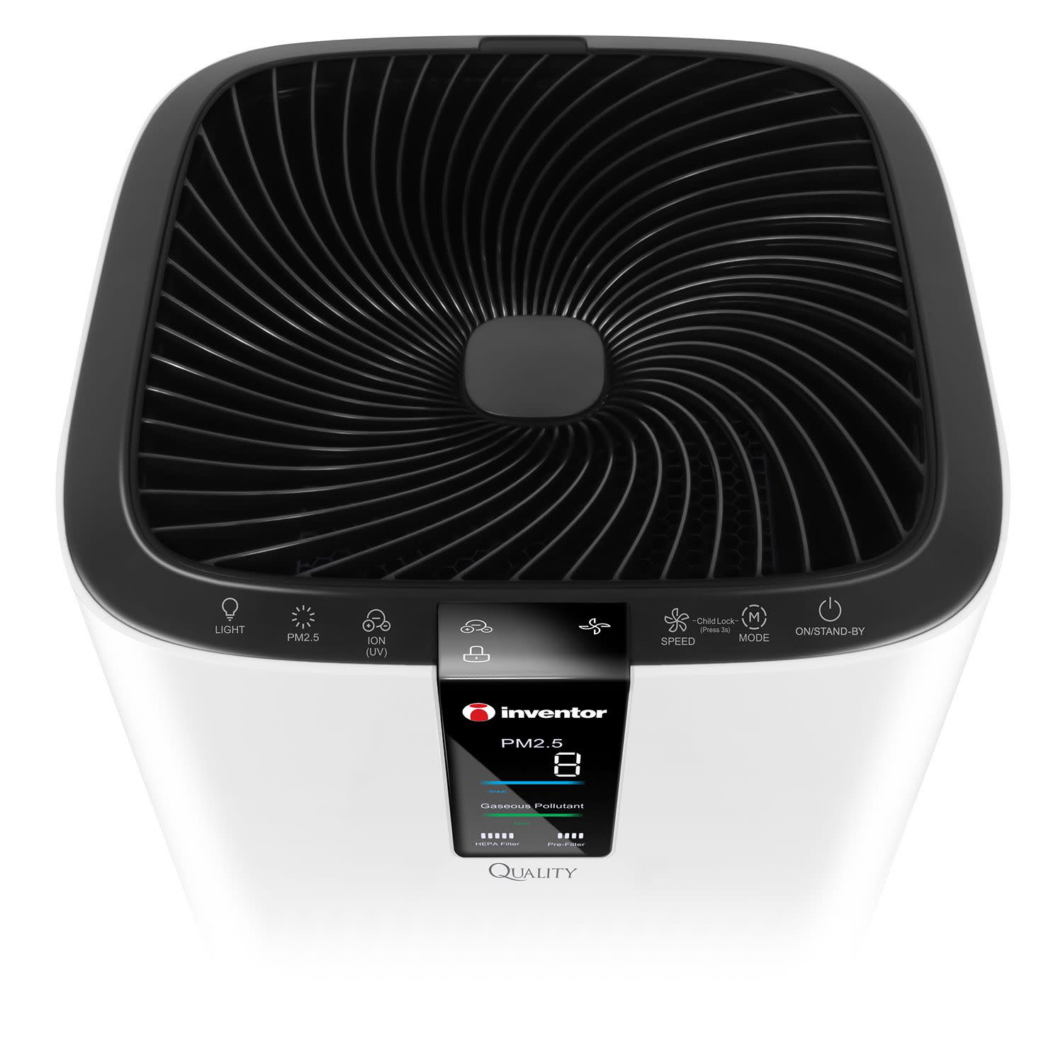 Υγιεινό περιβάλλον με τη βοήθεια του αυτού του Inventor καθαριστή-ιονιστή με κάλυψη χώρων έως 100m2, δείκτη ποιότητας και 3 αισθητήρες που ελέγχουν διαρκώς τις συνθήκες του χώρου που βρίσκεται.