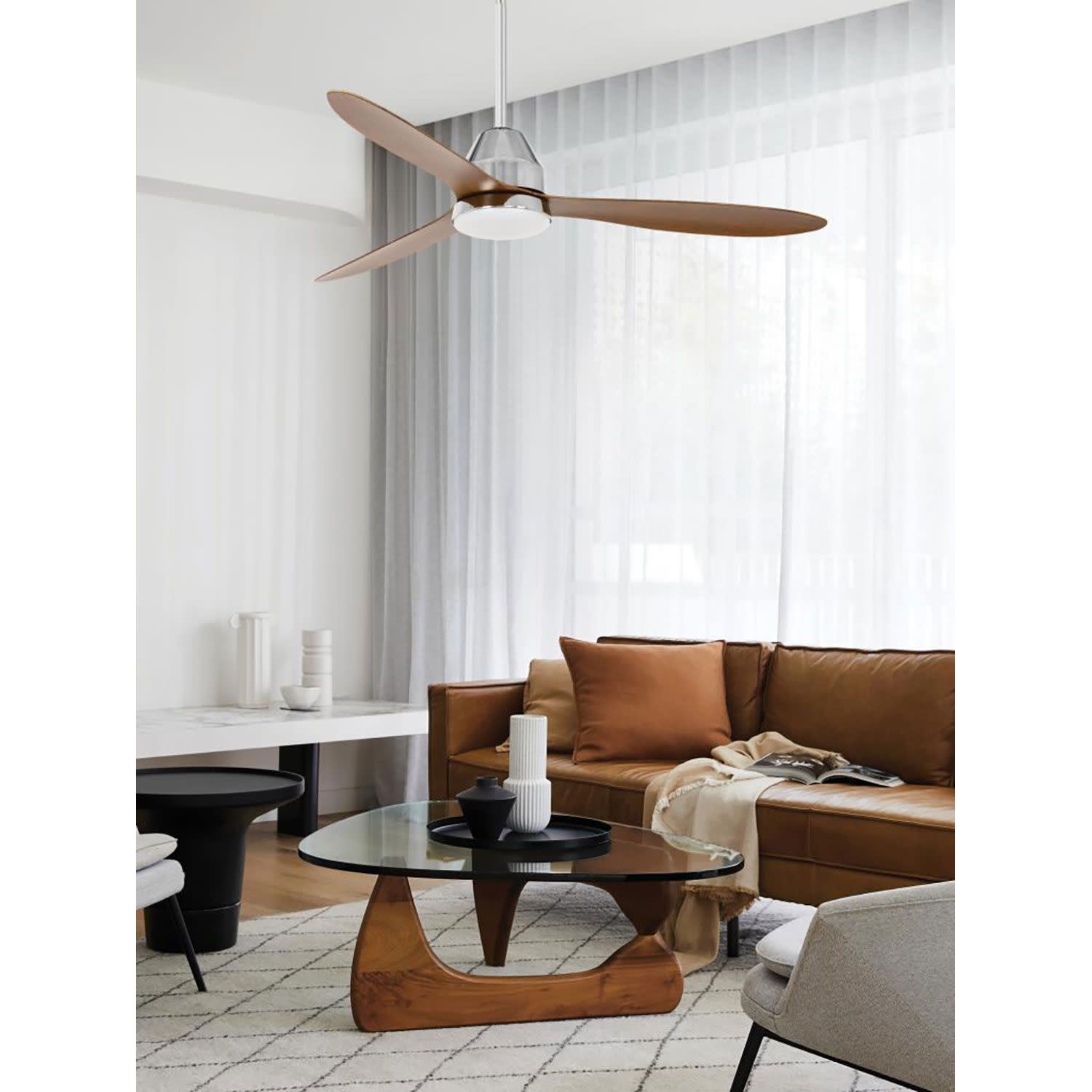 Ανεμιστήρας Οροφής Whiteheaven της Lucci Air σε μοντέρνο χρώμα με καφέ πτερύγια και με ισχύ 35W... που θα αλλάξει αποτελεσματικά τη θερμοκρασία του χώρου σου, χειμώνα- καλοκαίρι! Κι αυτό διότι, λειτουργεί κλασικά ως ανεμιστήρας, που «απλώνει» στο δωμάτιο κρύο αέρα, όμως... χρησιμοποιείται και τον χειμώνα, αφού όταν τον χρειαστείς θα «σκορπίσει» και θερμά ρεύματα αέρα. Με 6 επιλογές ταχύτητας και τηλεχειριστήριο, είναι η κατάλληλη συσκευή για να διαμορφώνεις… χαλαρό κλίμα σε κάθε περίσταση και σε κάθε χώρο!