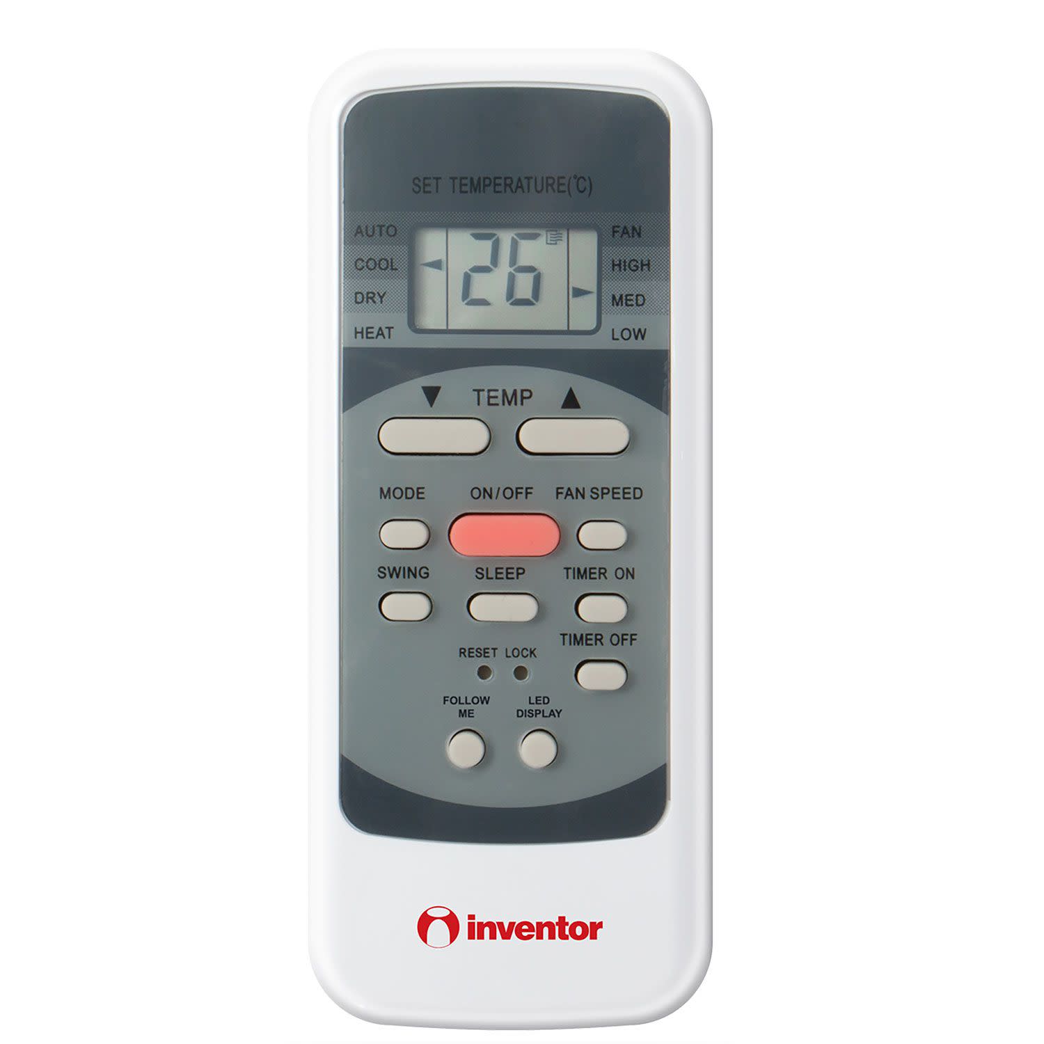 Φορητό κλιματιστικό Inventor, ψυκτικής απόδοσης 9000BTU/h, με λειτουργία Follow Me για έξυπνη ρύθμιση της θερμοκρασίας και αυτόματη κίνηση περσίδων που εξασφαλίζει ομοιόμορφη κατανομή του αέρα.