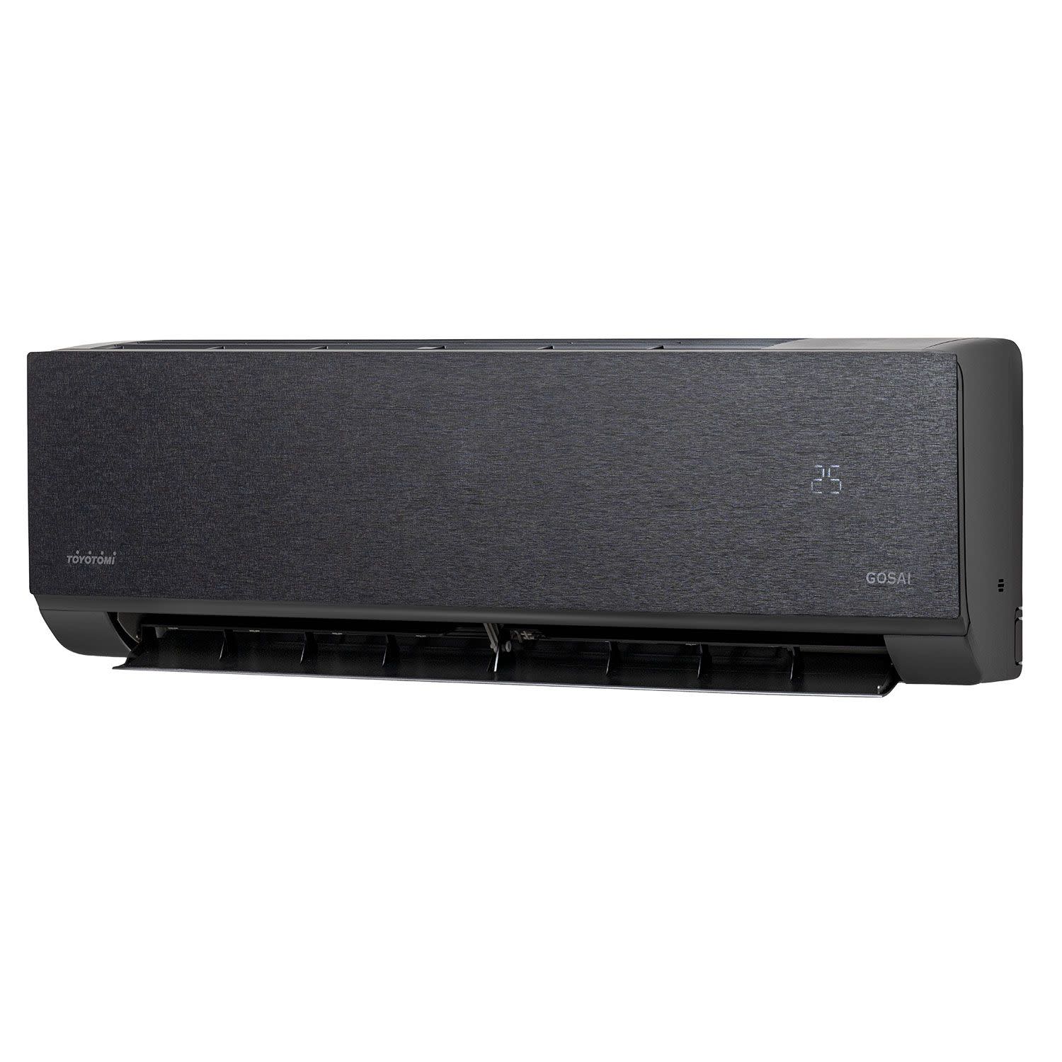 Μαύρο κλιματιστικό Gosai της Toyotomi με ονομαστική ισχύ 24.000BTU/h και ενεργειακή κλάση Α+++. Απόλαυσε ιδανικό κλίμα με hi-tech λειτουργίες, όπως: Door Card Control, I-Sense και Voice Control.