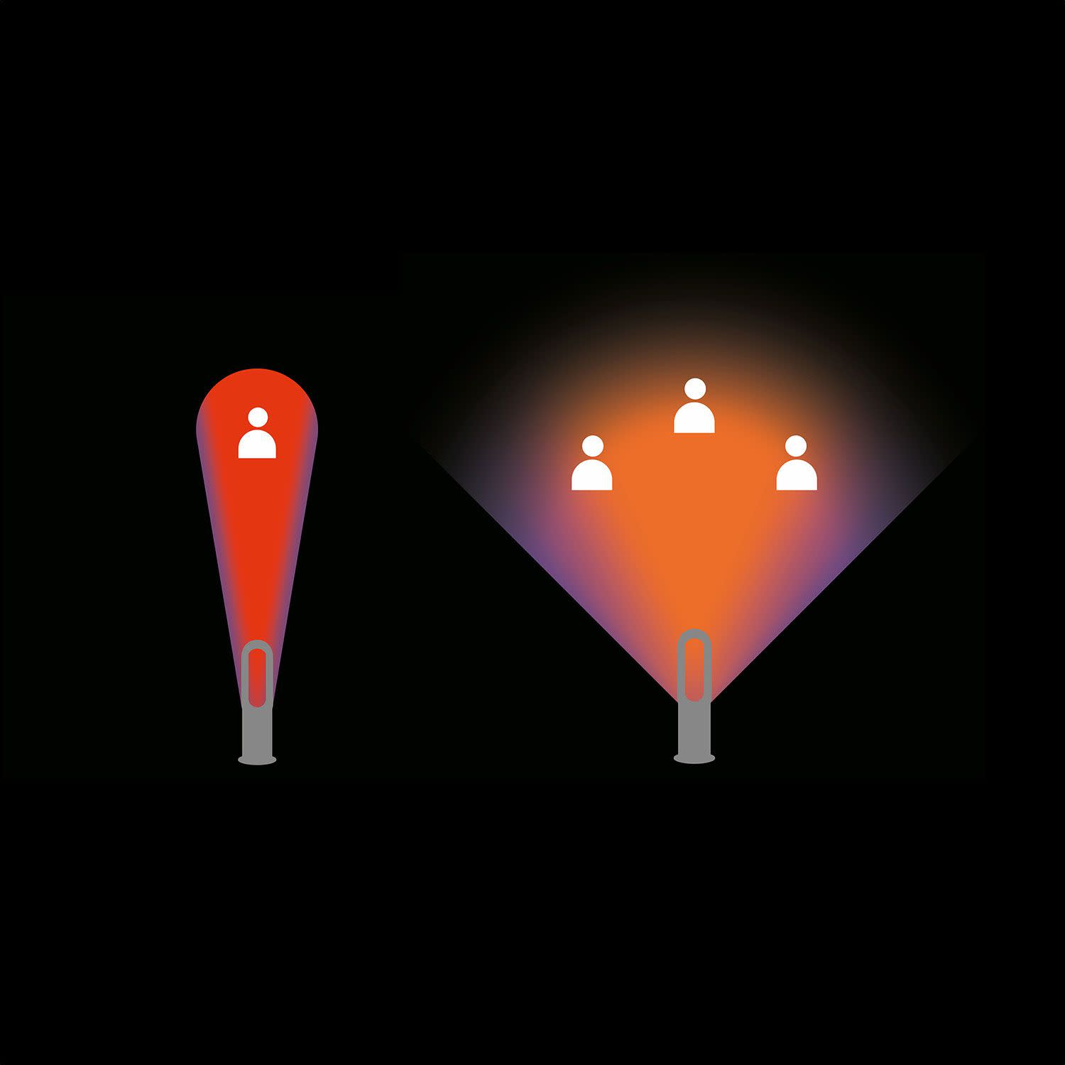 Επίλεξε ανάμεσα στην εστιασμένη λειτουργία και στη λειτουργία διάχυσης για προσωπική θέρμανση ή θέρμανση ολόκληρου του δωματίου. Τις ζεστές μέρες, επίλεξε την κατεύθυνση της δροσιάς ή του απαλού αέρα.