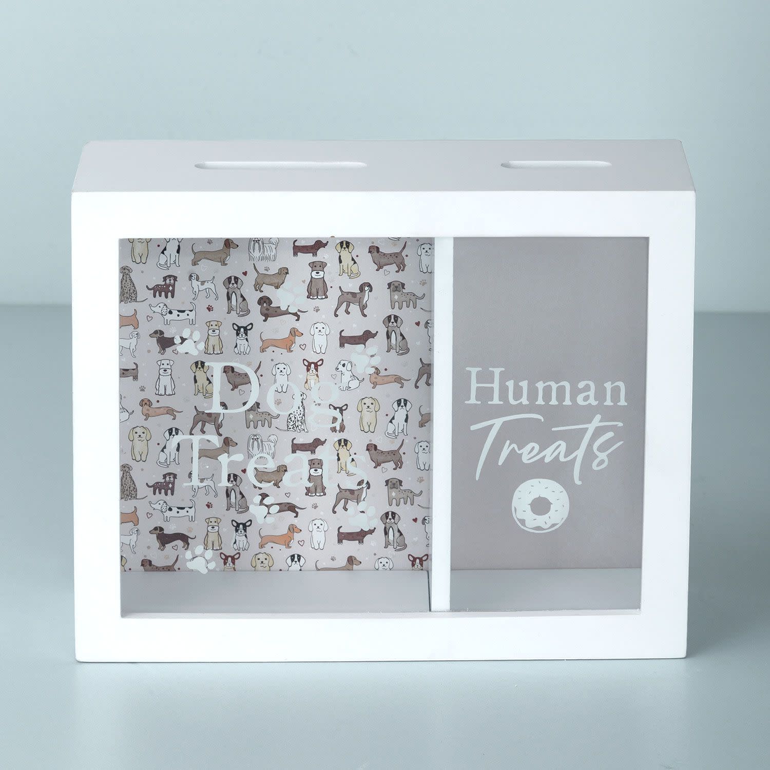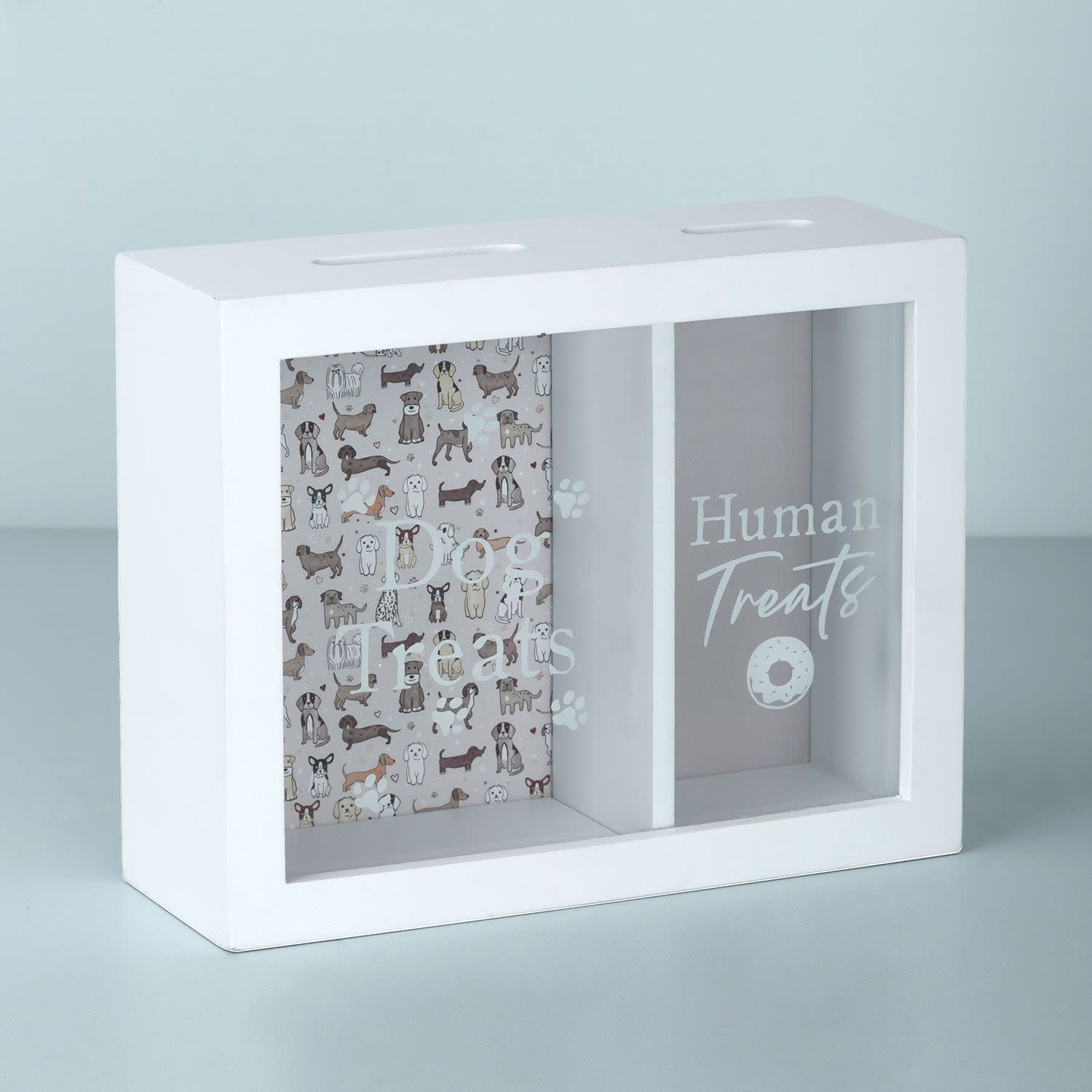 Με τον κουμπαρά Dog Treats από Sentio, θα ξεκινήσεις την αποταμίευση για τις αγαπημένες λιχουδιές του κατοικίδιού σου, ενώ παράλληλα θα κάνεις αποταμίευση και για τις δικές σου αγαπημένες λιχουδιές! Η διάφανη μπροστινή επιφάνεια από γυαλί, θα σε βοηθάει να βλέπεις, πόσο κοντά είσαι στον στόχο σου.