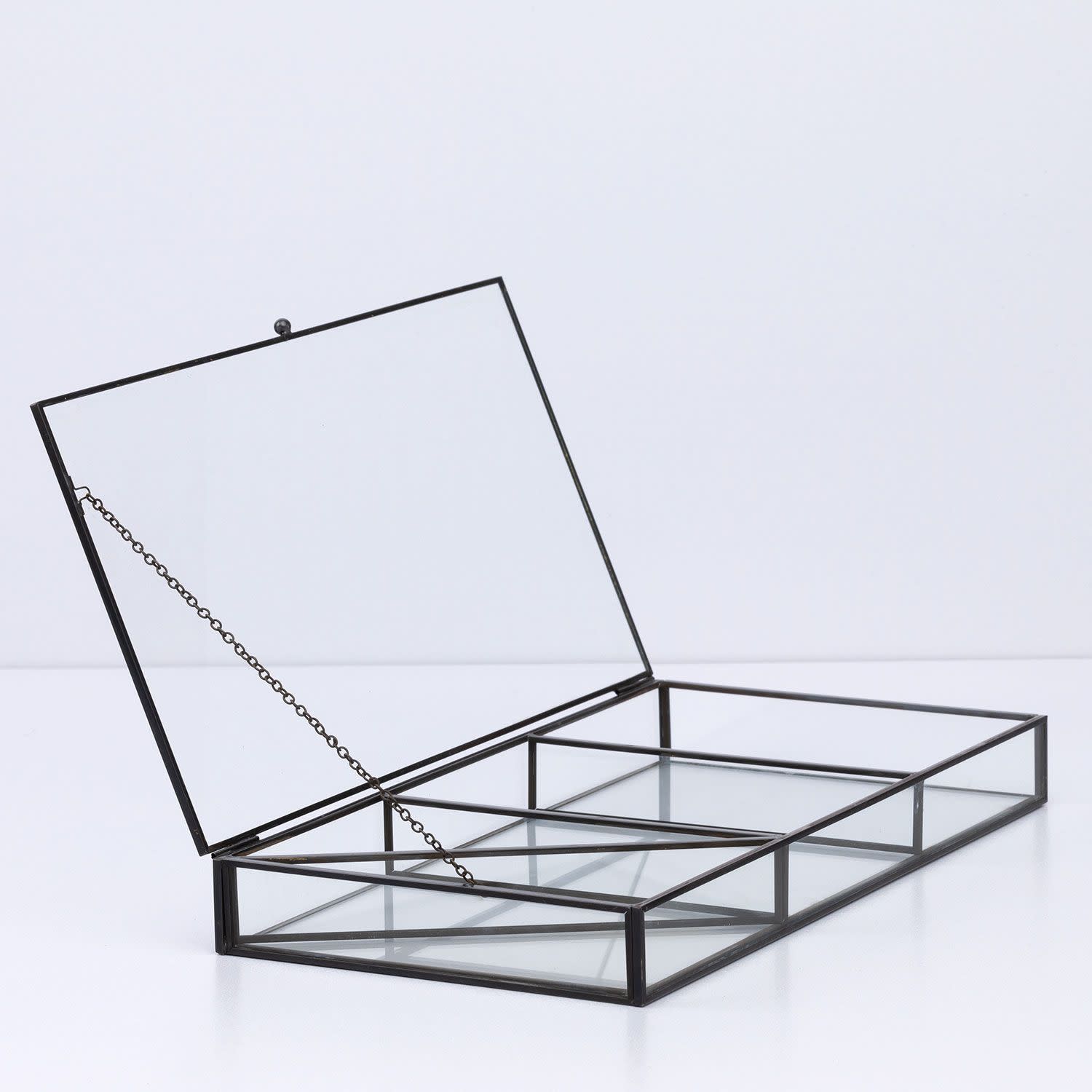 Γυάλινη κοσμηματοθήκη της Sentio σε διάφανο χρώμα και μαύρες λεπτομέρειες για να ταιριάζει παντού. Ιδανική για να αποθηκεύεις τα κοσμήματα σου και να τα έχεις πάντα τακτοποιημένα. Μπορείς αν θες να το συνδυάσεις με τα υπόλοιπα προϊόντα της συλλογής Black & White Sentio, για να απογειώσεις τη διακόσμηση του χώρου σου.