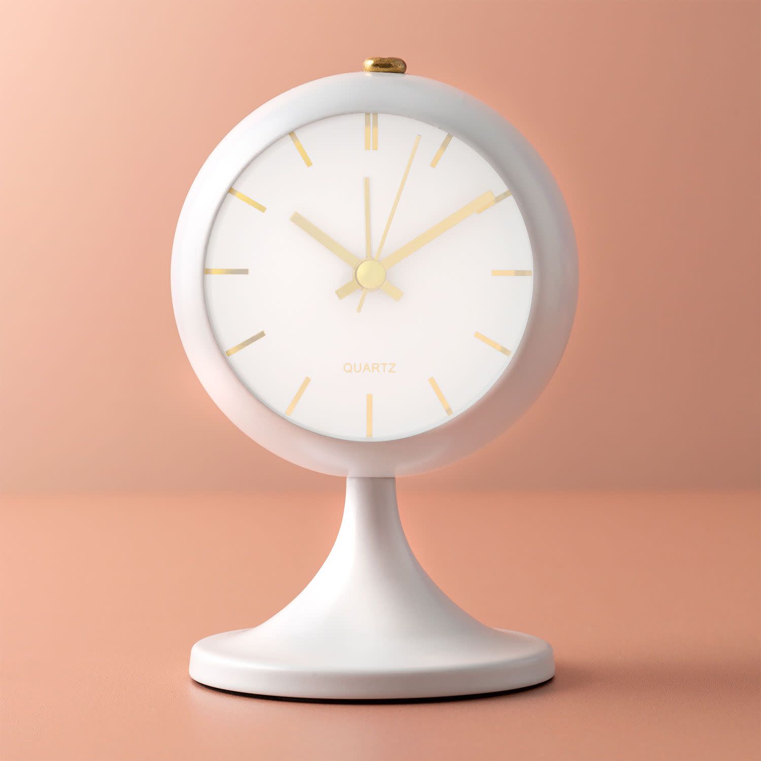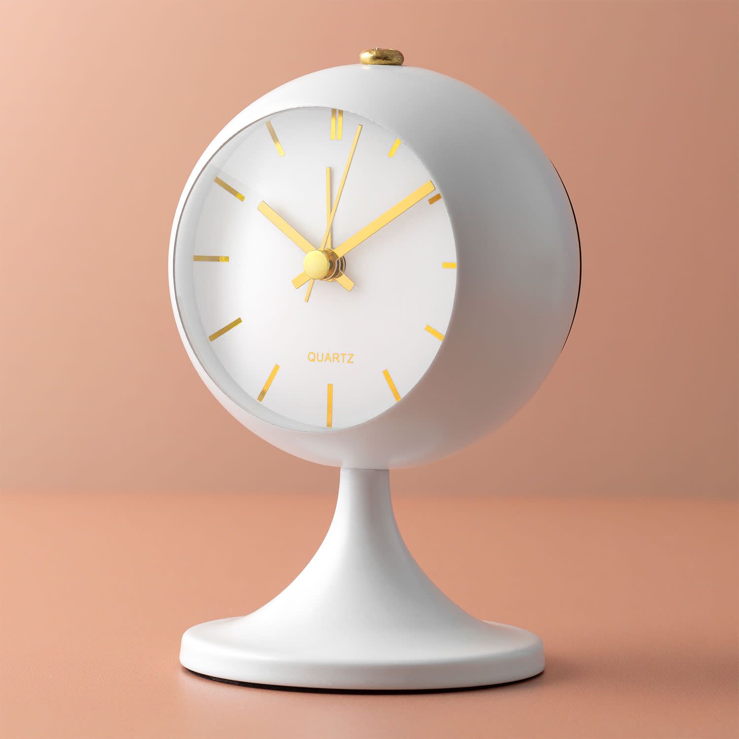 Επιτραπέζιο, μεταλλικό ρολόι της Sentio σε λευκό χρώμα, που θα αναβαθμίσει το design του σπιτιού σου. Χάρισε μοναδικό στιλ στον αγαπημένο σου χώρο με αυτό το must-have διακοσμητικό.