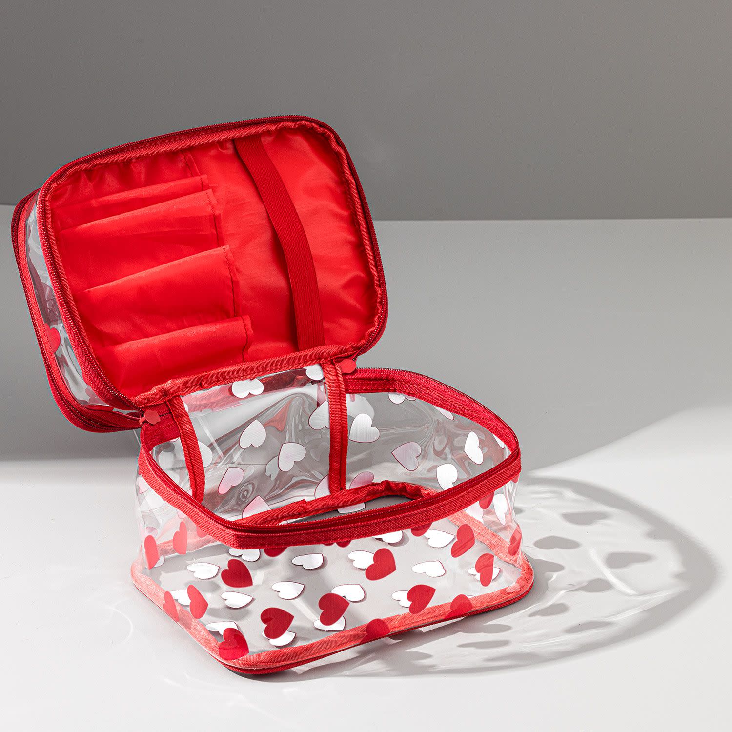 Το απόλυτο νεσεσέρ-τσαντάκι, για να σε συντροφεύει πάντα στις διακοπές σου. Είναι πλαστικό για να καθαρίζεται πανεύκολα, διαθέτει 2 επίπεδα για να έχεις εκτός από τα καλλυντικά σου και όλες σου τις κρέμες μαζί, αλλά και θήκες για τα πινέλα σου για να είναι τακτοποιημένα κάθε στιγμή. Το girly σχέδιο με τις καρδούλες θα σε κάνει να το αγαπήσεις ακόμα περισσότερο!
