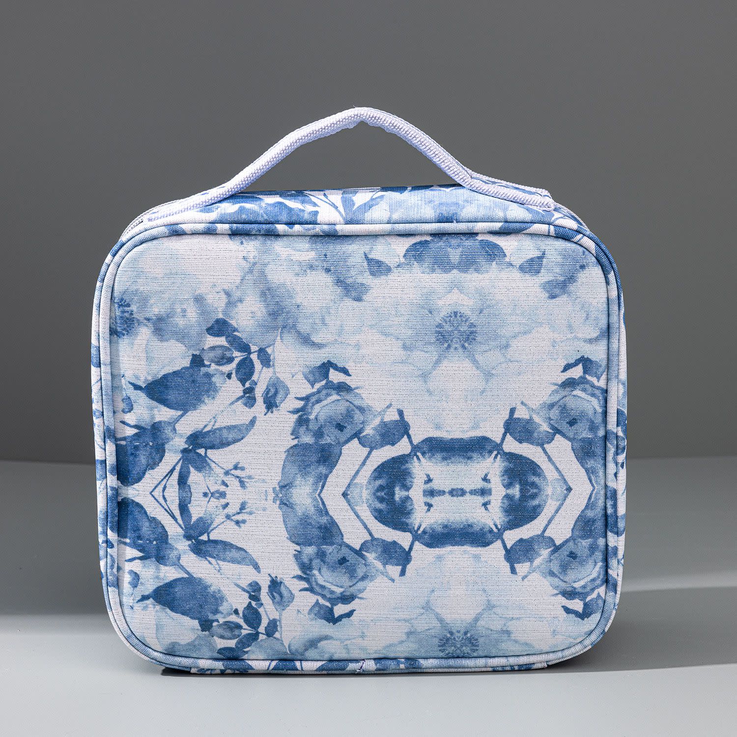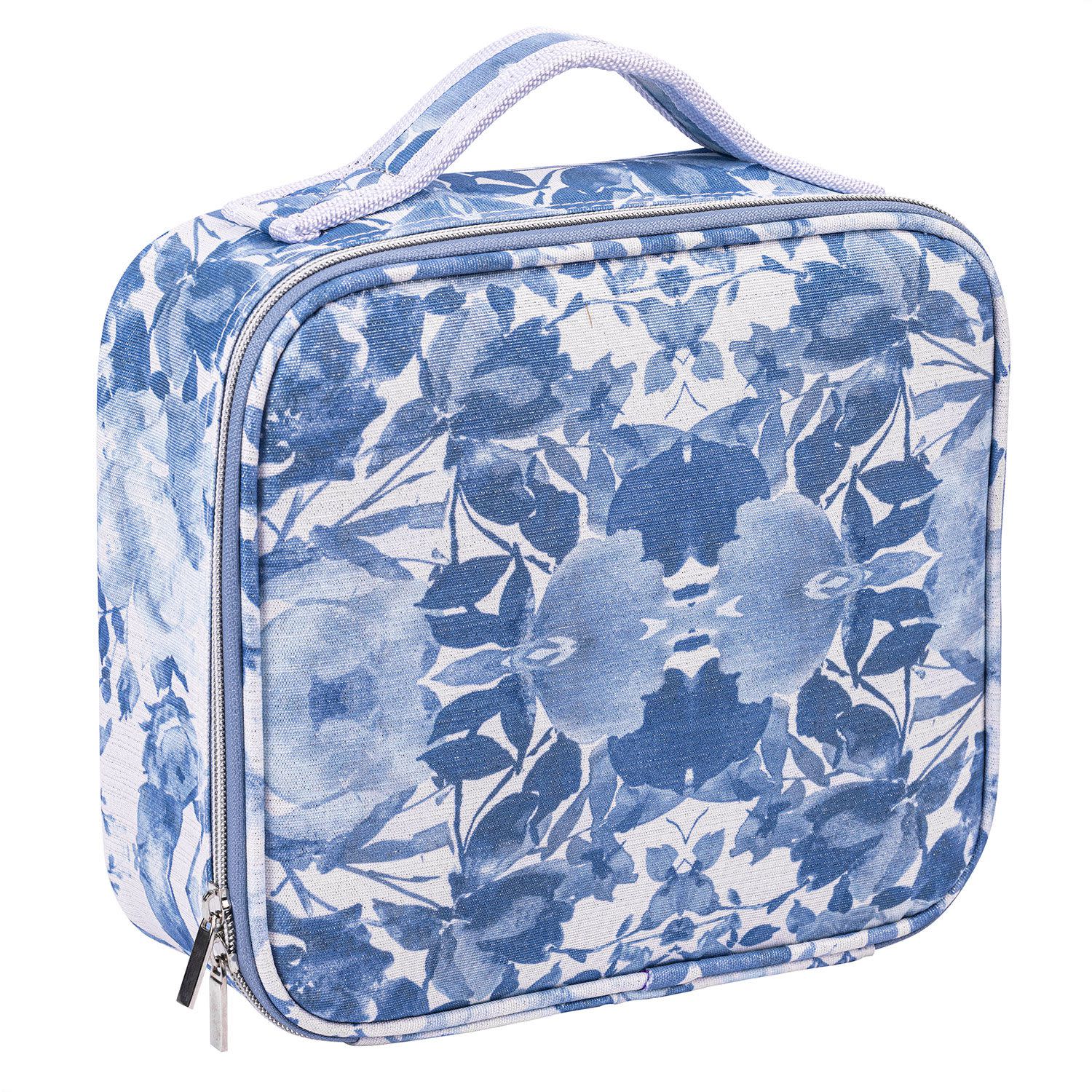 Sentio Τετράγωνη Κοσμηματοθήκη-Τσαντάκι με Γαλάζια Λουλούδια