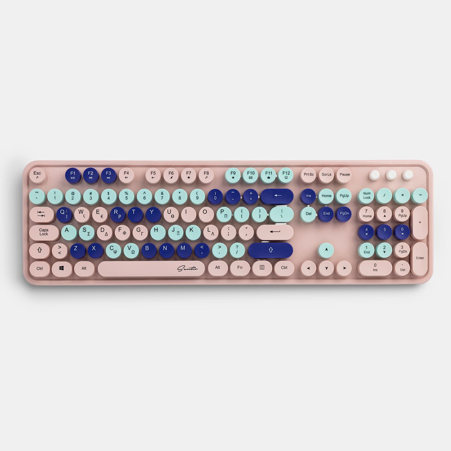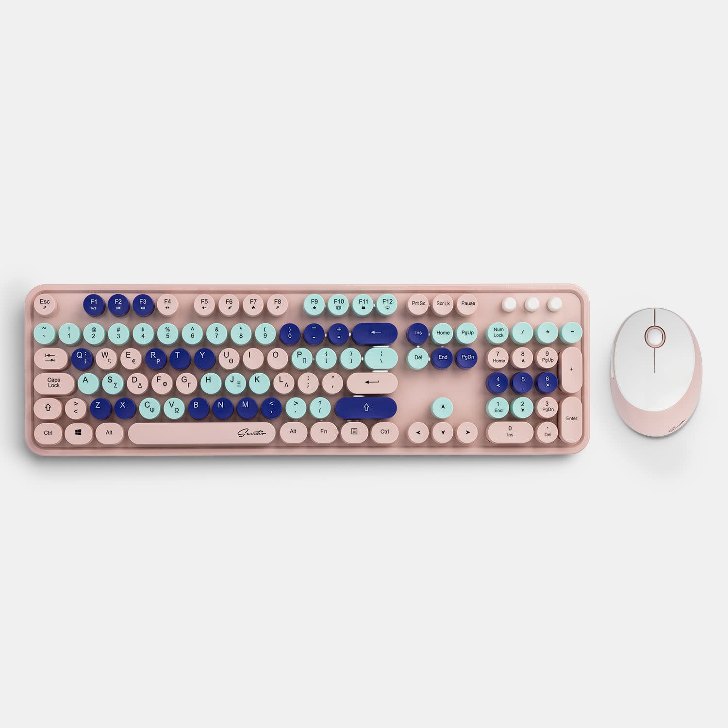 Retro set πληκτρολόγιο & ασύρματο ποντίκι από τη Sentio σε combo ροζ χρώμα, για να δώσεις μια vintage αισθητική στο γραφείο σου. Με τόσο fun εξοπλισμό, τα καθημερινά tasks θα γίνουν διασκέδαση!