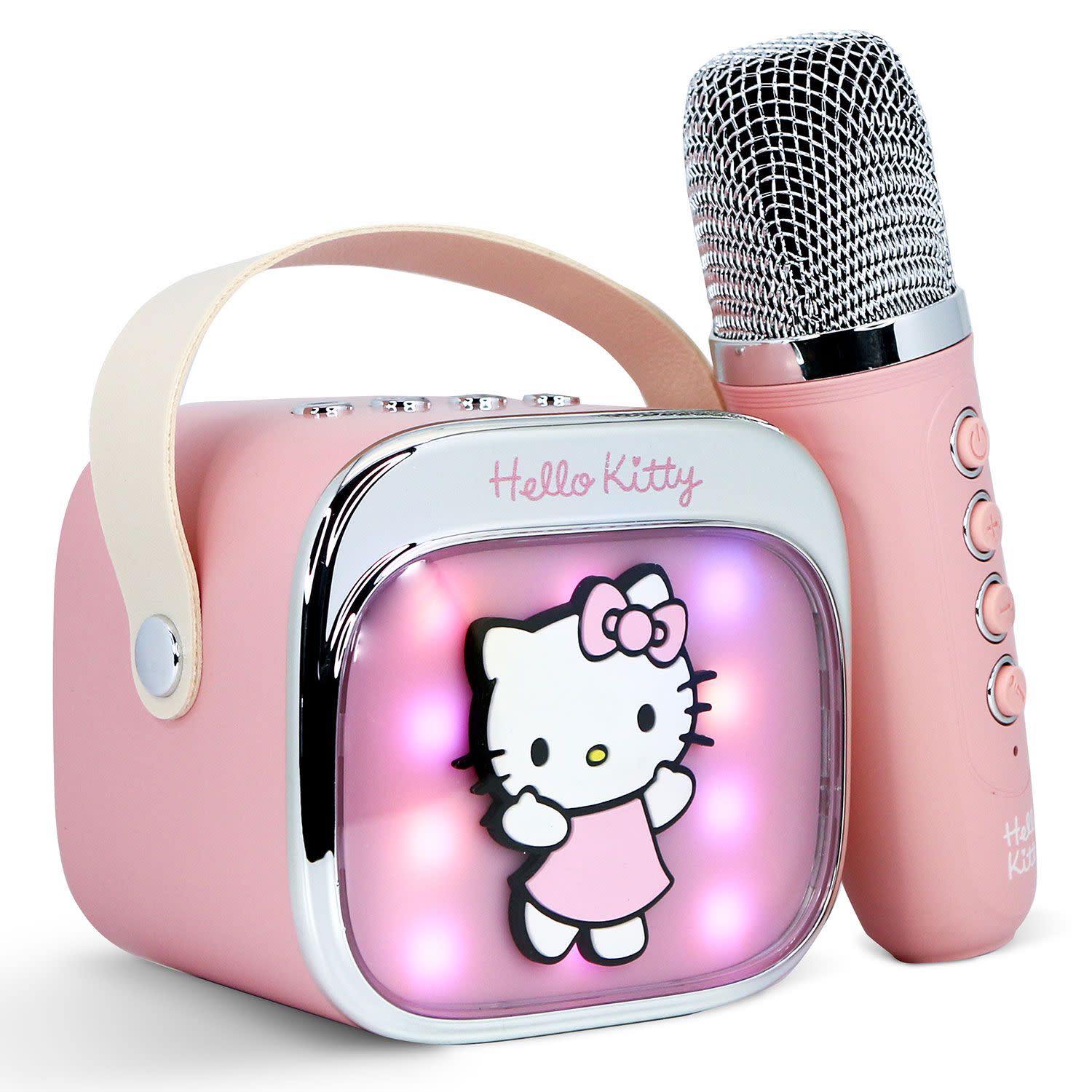 Το πάρτι ξεκινά με αυτό το υπέροχο ασύρματο σετ καραόκε Hello Kitty! Απλά σύνδεσε το ασύρματο ηχείο καραόκε με τις συσκευές σου μέσω bluetooth, παίξε την αγαπημένη σου μουσική και τραγούδησε ό,τι θέλεις μέσω του μικροφώνου. Το ηχείο παρέχει ήχο υψηλής ποιότητας (HD) και μια διασκεδαστική οπτική εμπειρία, χάρη στα χρωματιστά LED φώτα.