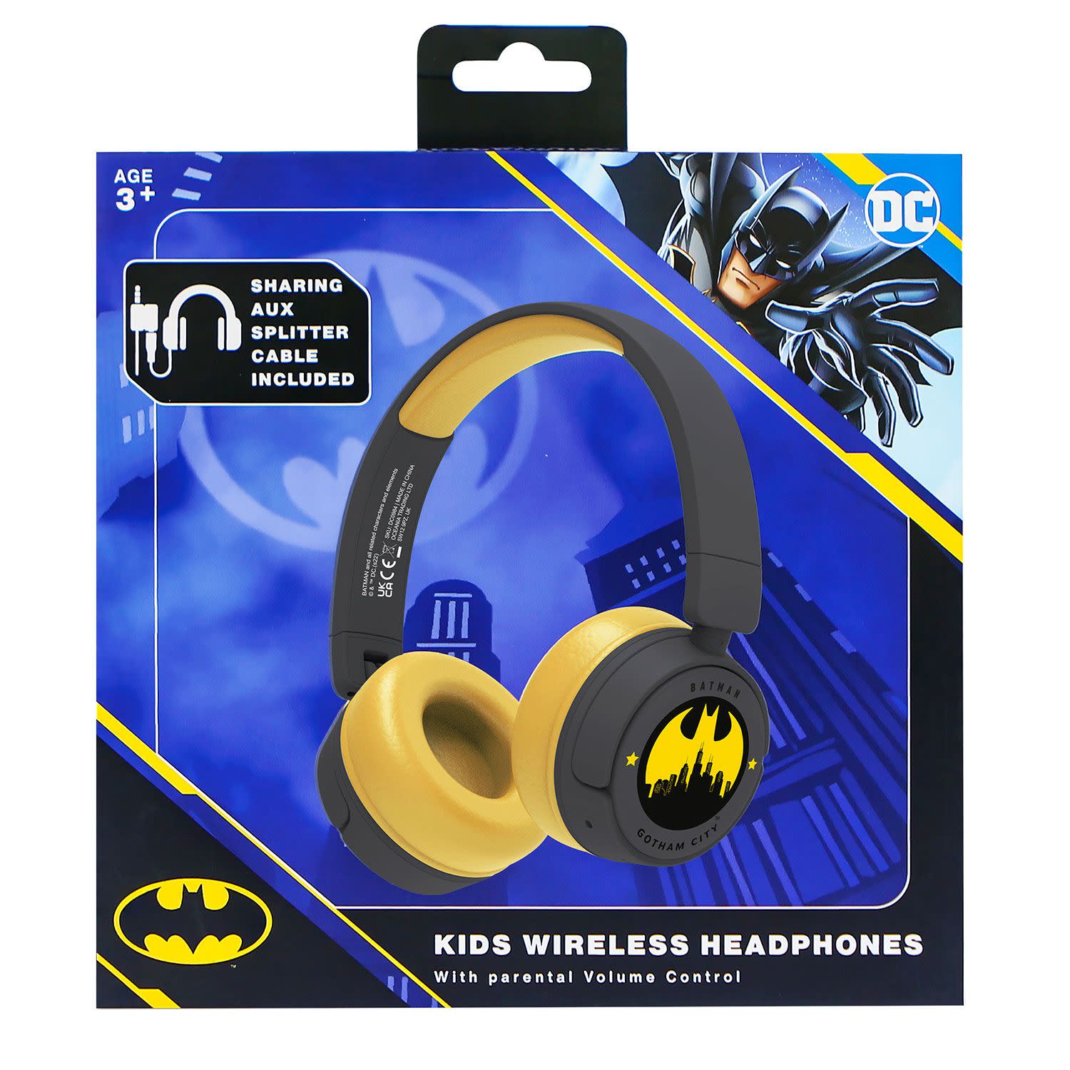 Τα ασύρματα ακουστικά Batman είναι κατάλληλα για παιδιά ηλικίας 3 ετών και άνω. Αυτά τα ασύρματα παιδικά ακουστικά, με ενσωματωμένο μικρόφωνο, διαθέτουν επίσης δύο επίπεδα ήχου 85 dB και μια πιο δυνατή ρύθμιση για όταν χρειάζεσαι μεγαλύτερη ένταση ήχου (όπως όταν είσαι σε αεροπλάνο ή τρένο). Μπορούν να χρησιμοποιηθούν με όλες τις αγαπημένες σου συσκευές (tablet, έξυπνα τηλέφωνα, φορητά παιχνίδια, συσκευές εκμάθησης, συσκευές παιχνιδιών). Μπορούν επίσης να χρησιμοποιηθούν σε ενσύρματη λειτουργία, χρησιμοποιώντας το καλώδιο κοινής χρήσης ήχου με υποδοχή γενικής υποδοχής 3,5 mm (περιλαμβάνεται).