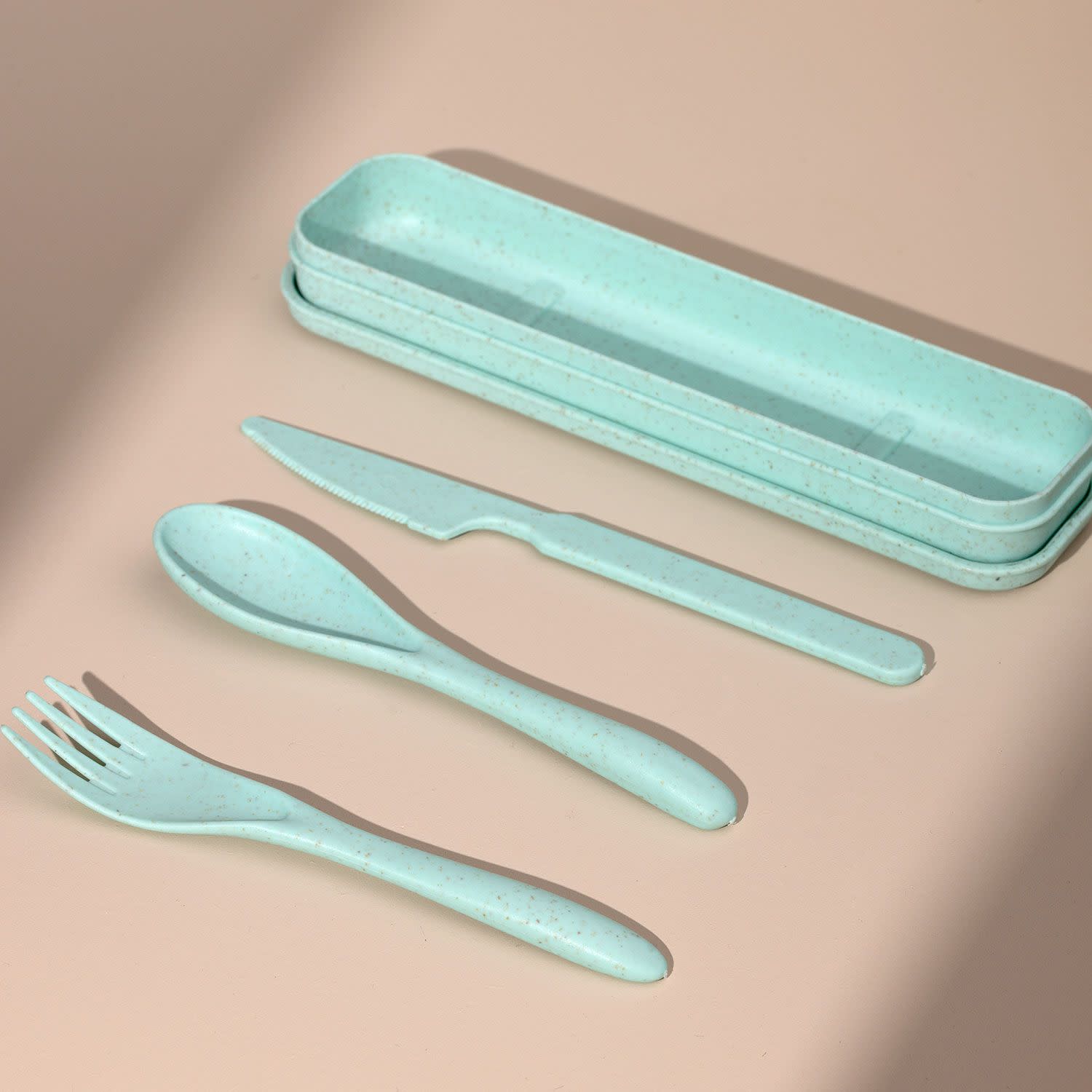 Ένα πρακτικό σετ μαχαιροπίρουνα για να έχεις στην τσάντα σου. Περιλαμβάνει πιρούνι, κουτάλι και μαχαίρι σε mint απόχρωση.