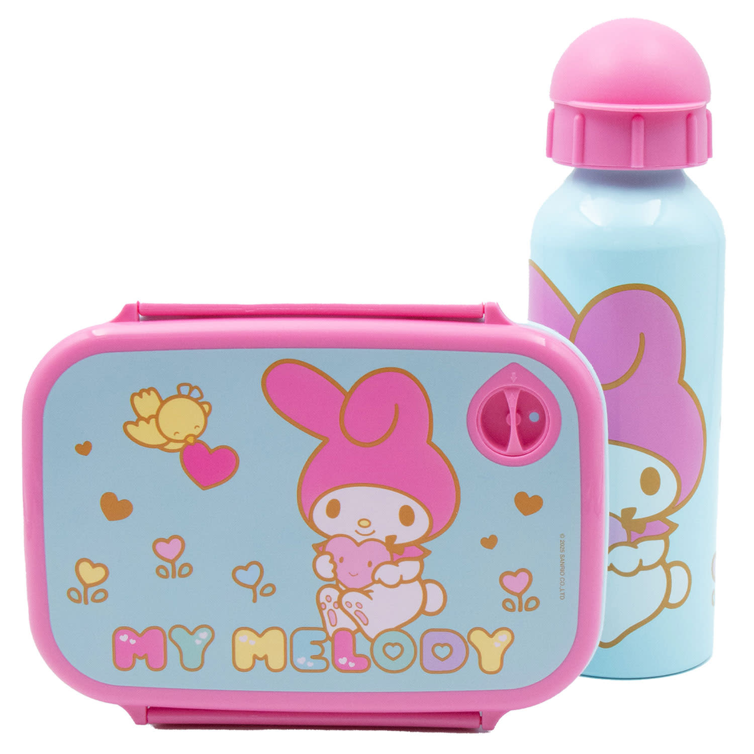Το φαγητοδοχείο & παγούρι My Melody περιέχει 1 φαγητοδοχείο και 1 παγούρι αλουμινίου, για να απολαμβάνουν τα παιδιά κάθε στιγμή το σπιτικό τους γεύμα στο σχολείο, στην παιδική χαρά και στη βόλτα! Το φαγητοδοχείο ξεχωρίζει για το αεροστεγές κλείσιμο, ενώ το παγούρι ανοίγει-κλείνει εύκολα και εξασφαλίζει την προστασία από διαρροές.
