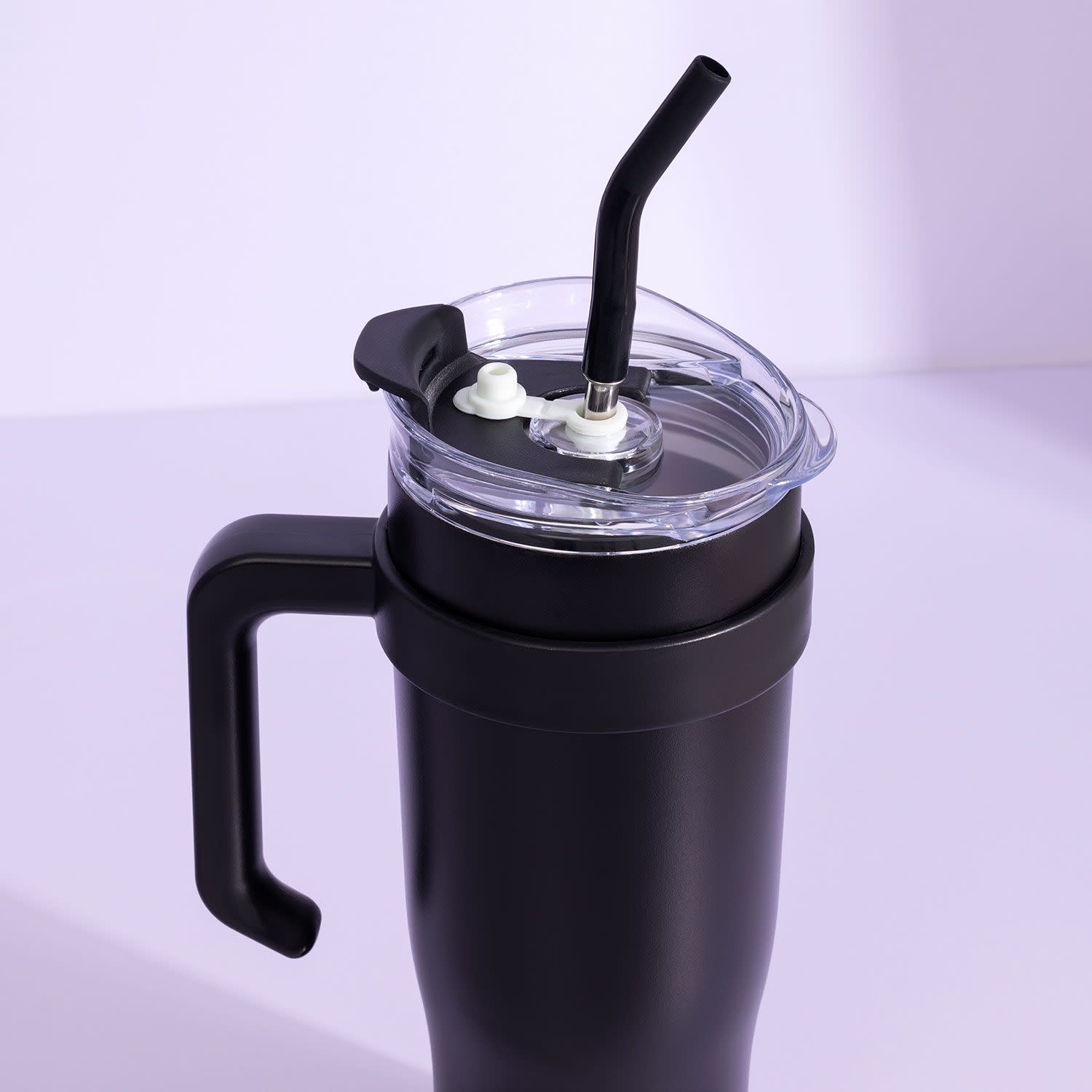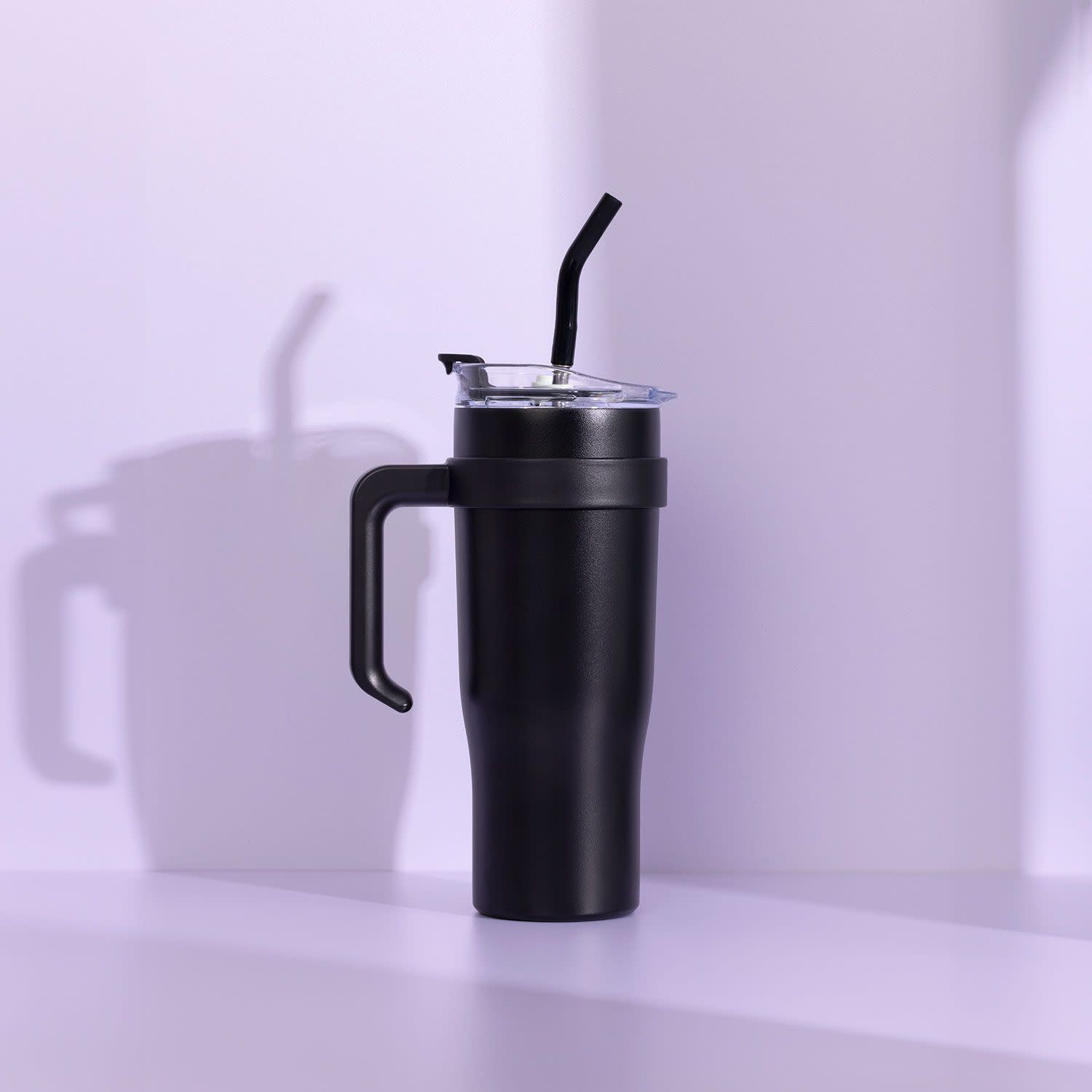 Ανοξείδωτο ποτήρι με καλαμάκι από τη Sentio, σε μαύρο χρώμα. Με χερούλι για άνετο κράτημα και μεγάλη χωρητικότητα, θα γίνει ο καλύτερος travel-buddy σου!