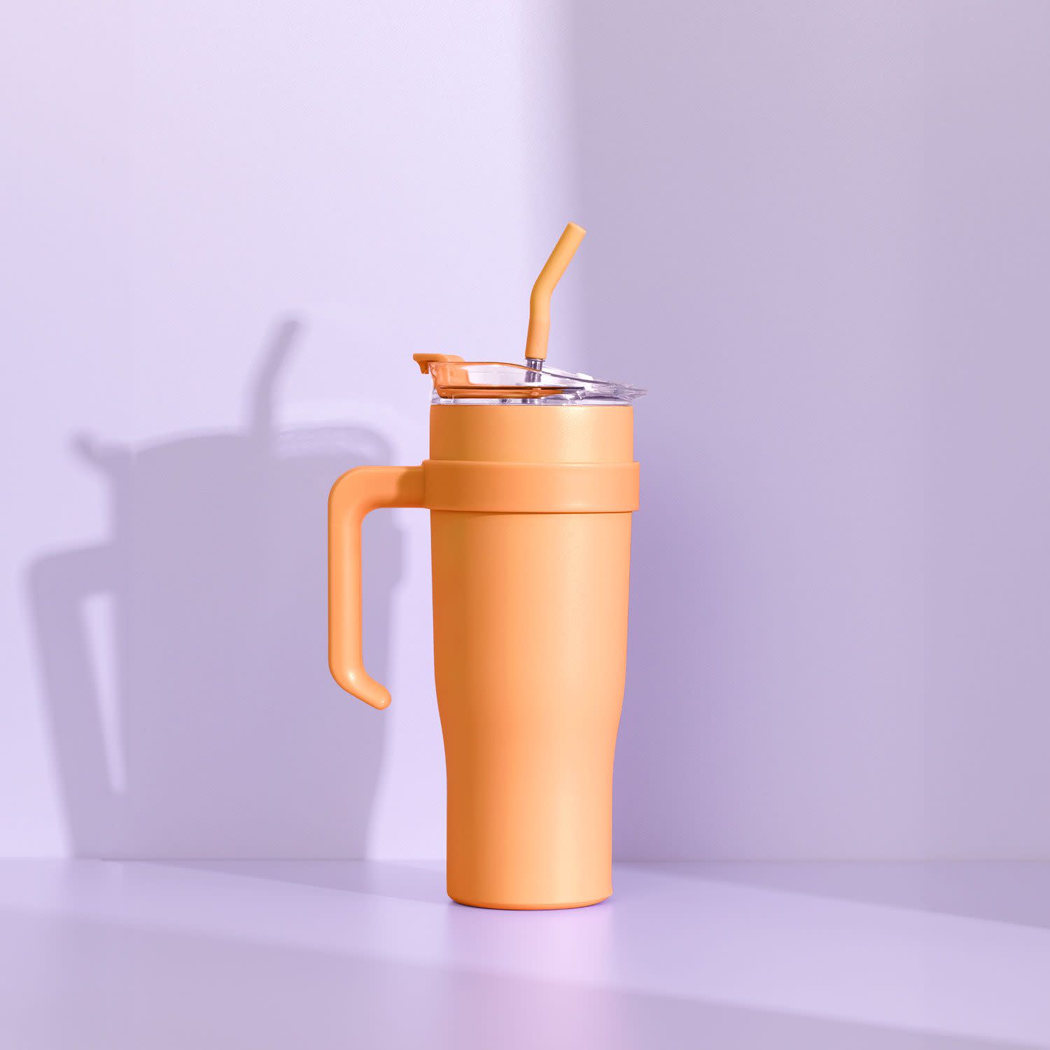 Sentio Ανοξείδωτο Ποτήρι Με Καλαμάκι Peach