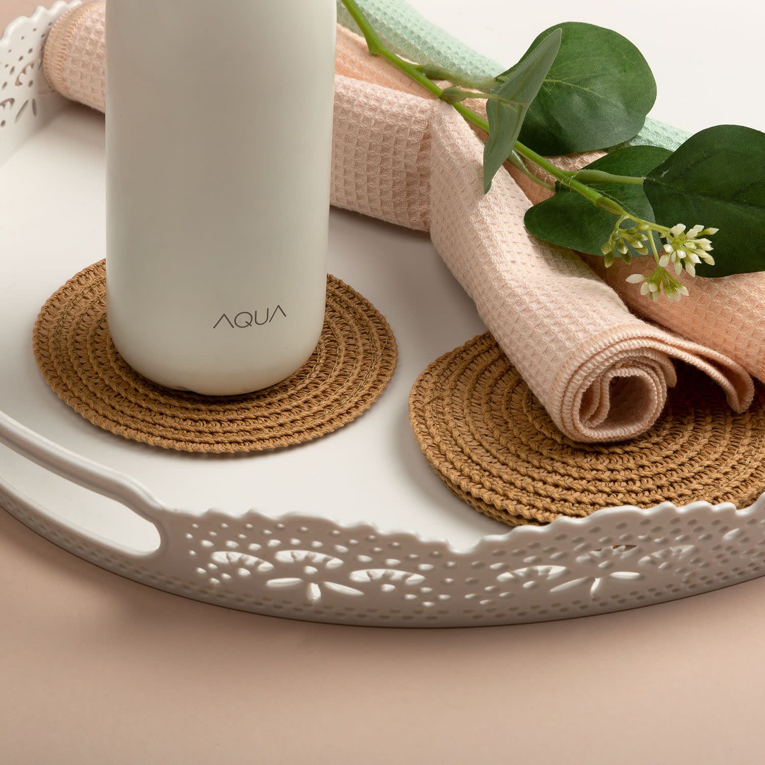 Μοντέρνα και ξεχωριστά σουβέρ από πλεκτή ίνα της Sentio, που θα ταιριάξουν τέλεια στο τραπεζάκι του σαλονιού ή την κουζίνα σου. Σέρβιρε το κρύο ή το ζεστό σου ρόφημα σωστά και χωρίς το φόβο μήπως φθαρούν ή λεκιαστούν τα ακριβά έπιπλα του σπιτιού!