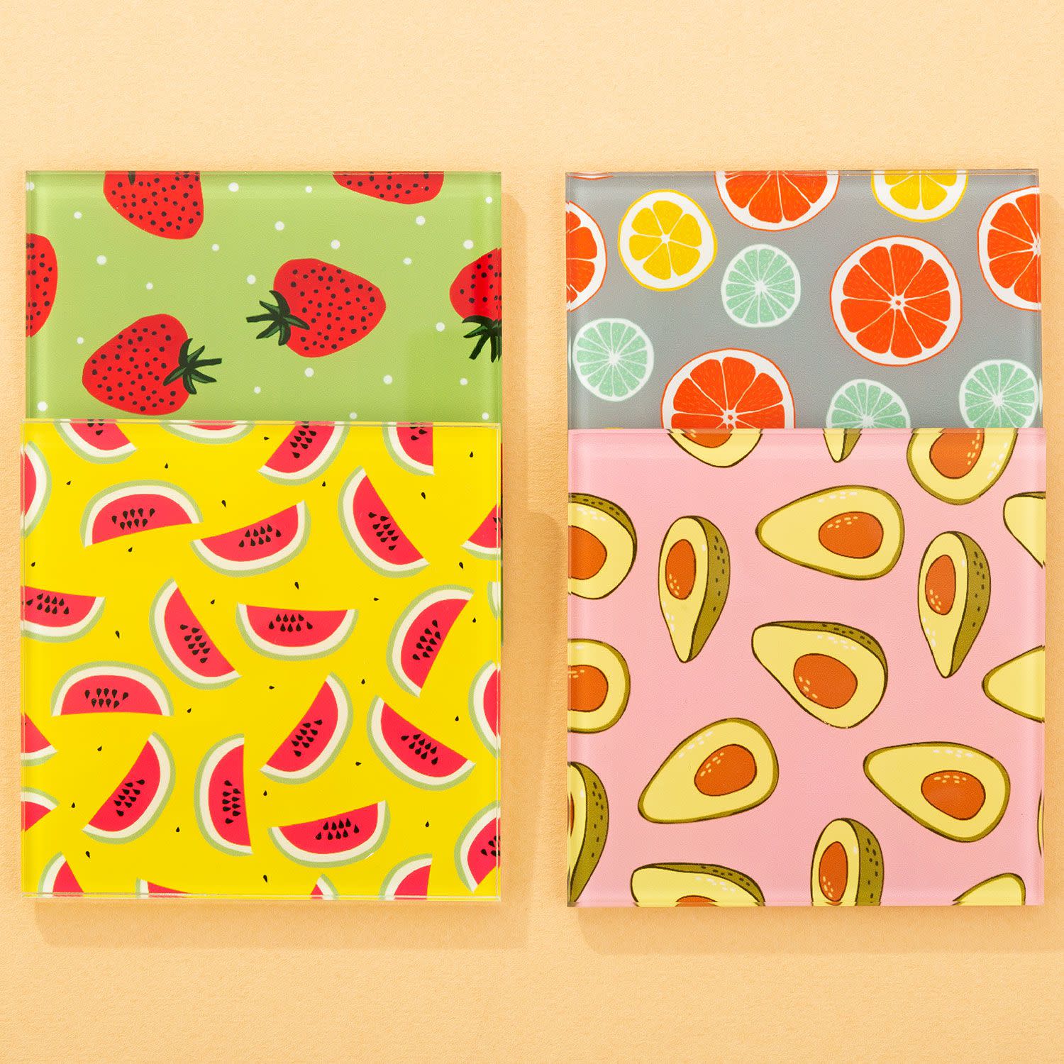 Για το τραπεζάκι του σαλονιού, για το γραφείο σου, για την κουζίνα! Τα σουβέρ fruits τεσσάρων τεμαχίων με ιδιαίτερο design, θα ταιριάξουν τέλεια, ενώ είναι η ιδανική επιλογή για να σερβίρεις το κρύο ή το ζεστό ρόφημά σου. Με ασφάλεια πάντα στις αγαπημένες σου επιφάνειες και χωρίς το φόβο μήπως φθαρούν ή λεκιαστούν τα έπιπλα του σπιτιού!