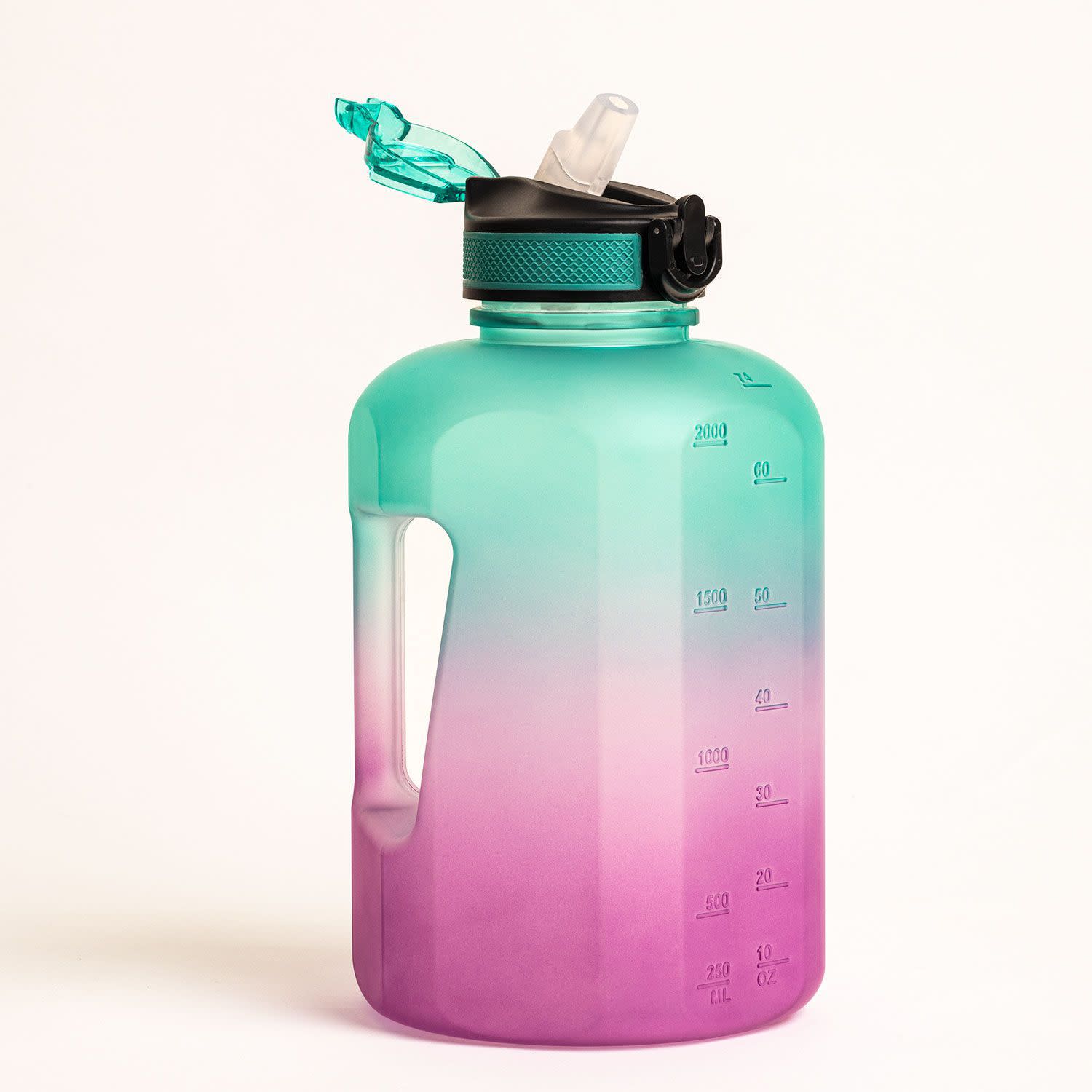 Παγούρι γυμναστηρίου Sentio σε πράσινο-ροζ χρώμα, μεγέθους 2.2Lt, ιδανικό για κάθε fitness δραστηριότητα. Διαθέτει ανθεκτικό καπάκι ασφαλείας και αντιολισθητική λαβή για να μην τα κάνεις… μούσκεμα!