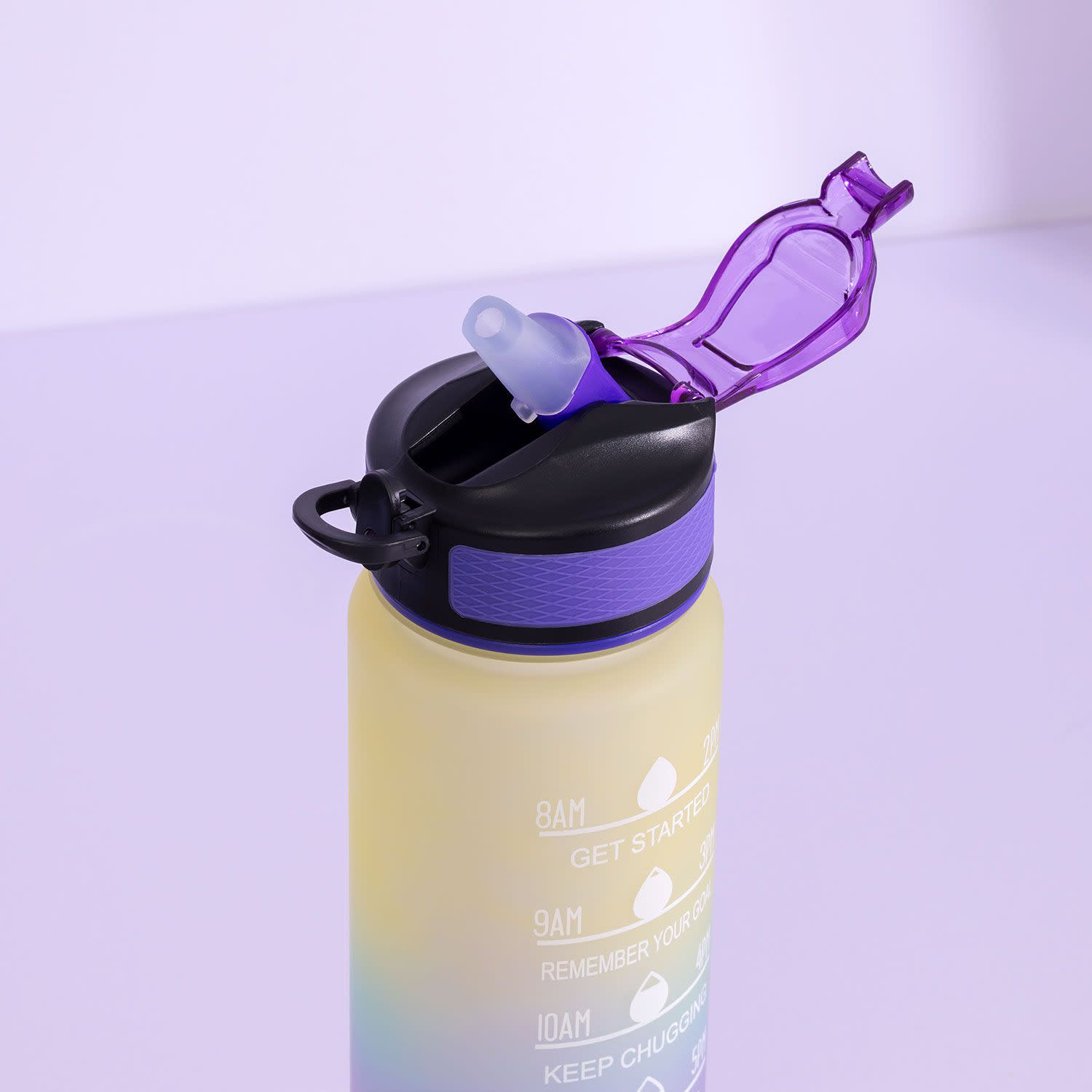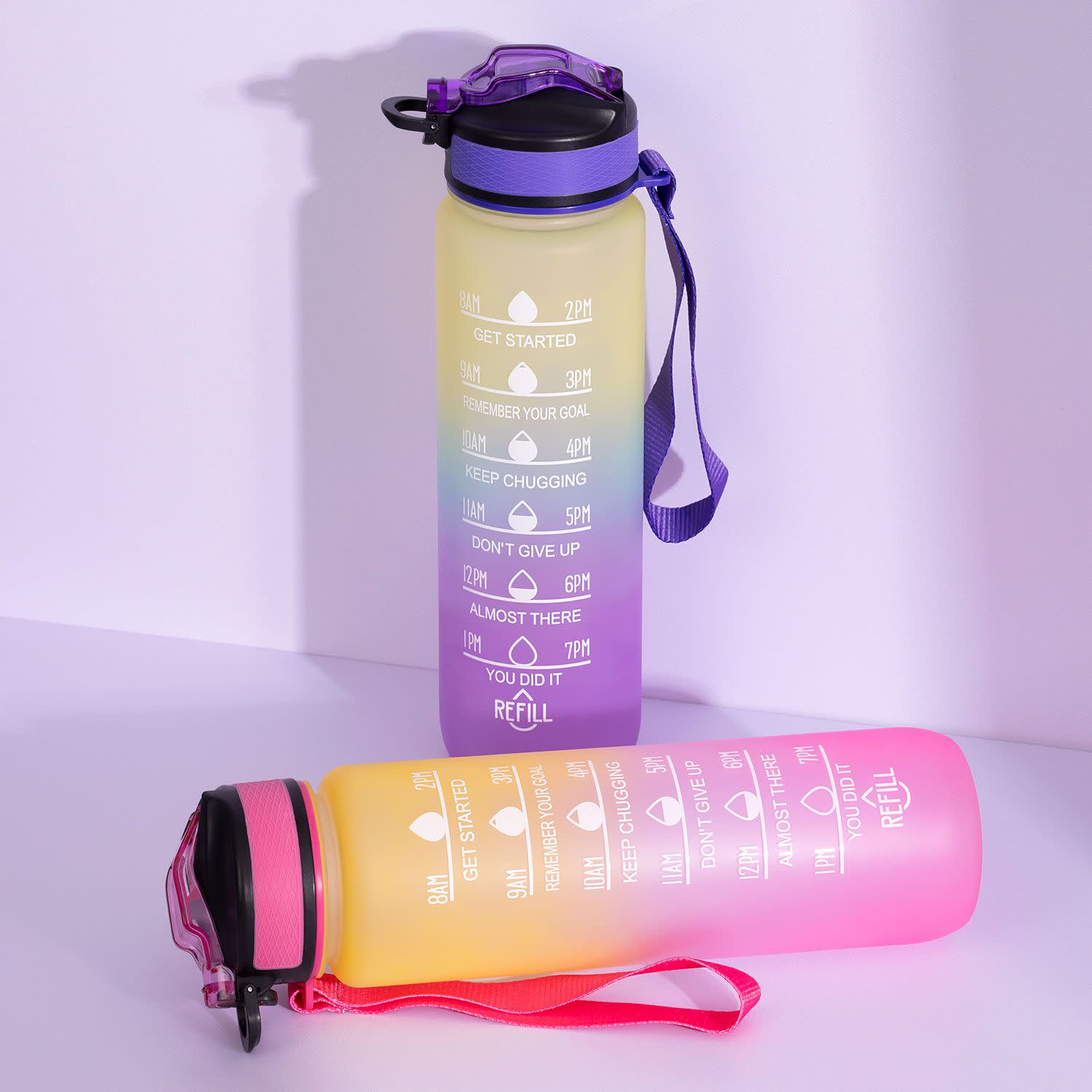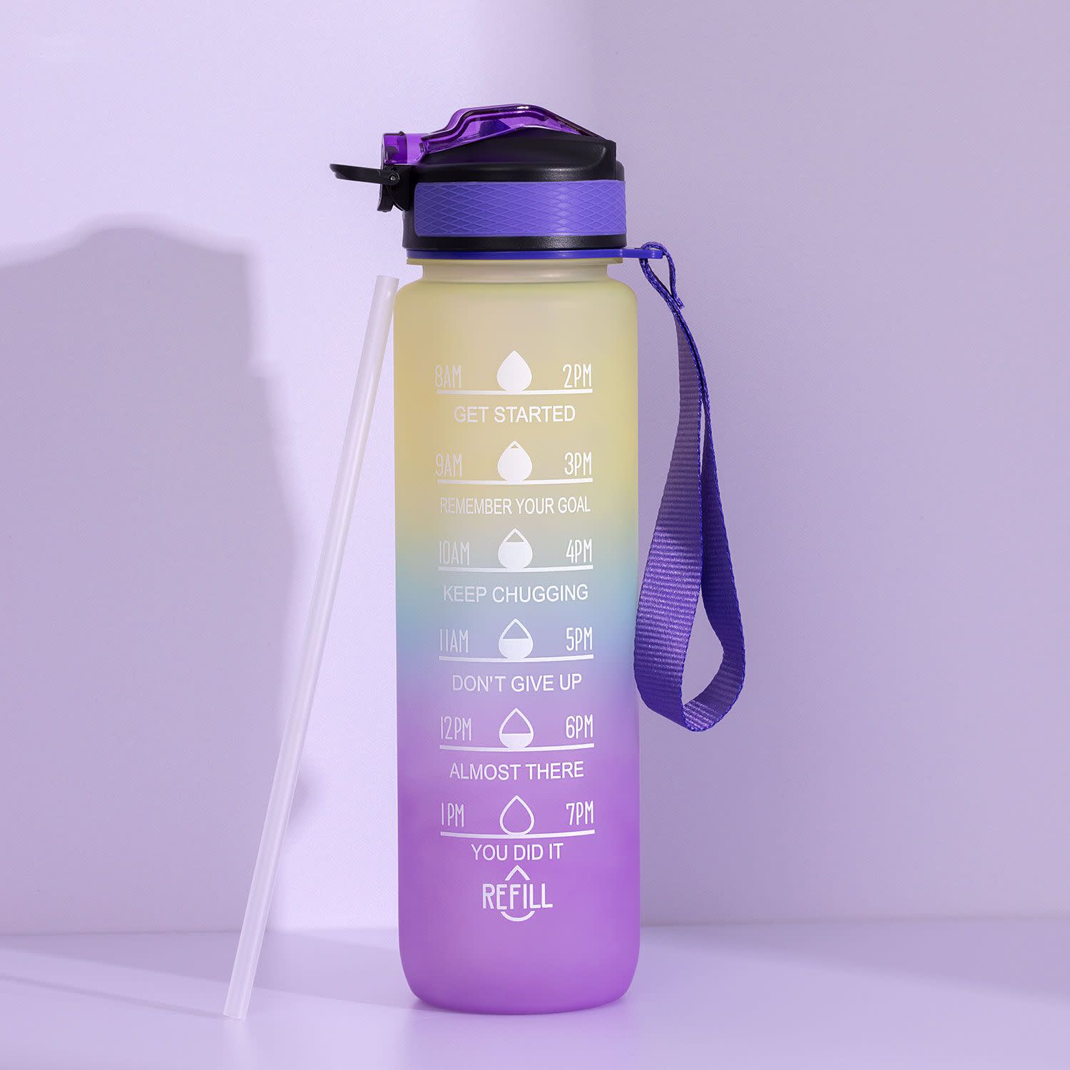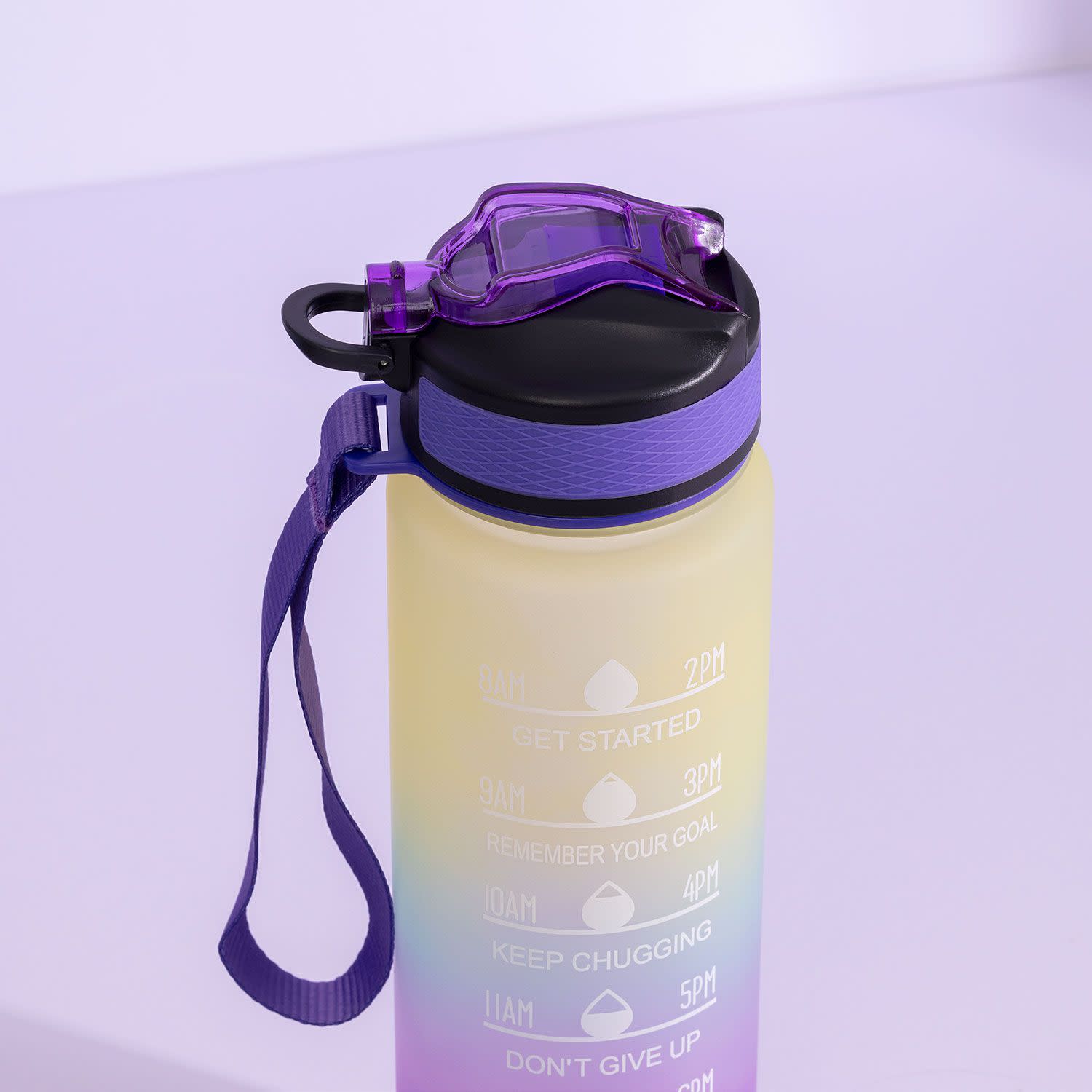 Παγούρι γυμναστηρίου Sentio σε κίτρινο-μωβ χρώμα, ιδανικό για κάθε fitness δραστηριότητα. Διαθέτει ανθεκτικό λουράκι, καπάκι ασφαλείας και αντιολισθητική λαβή για να μην τα κάνεις… μούσκεμα!