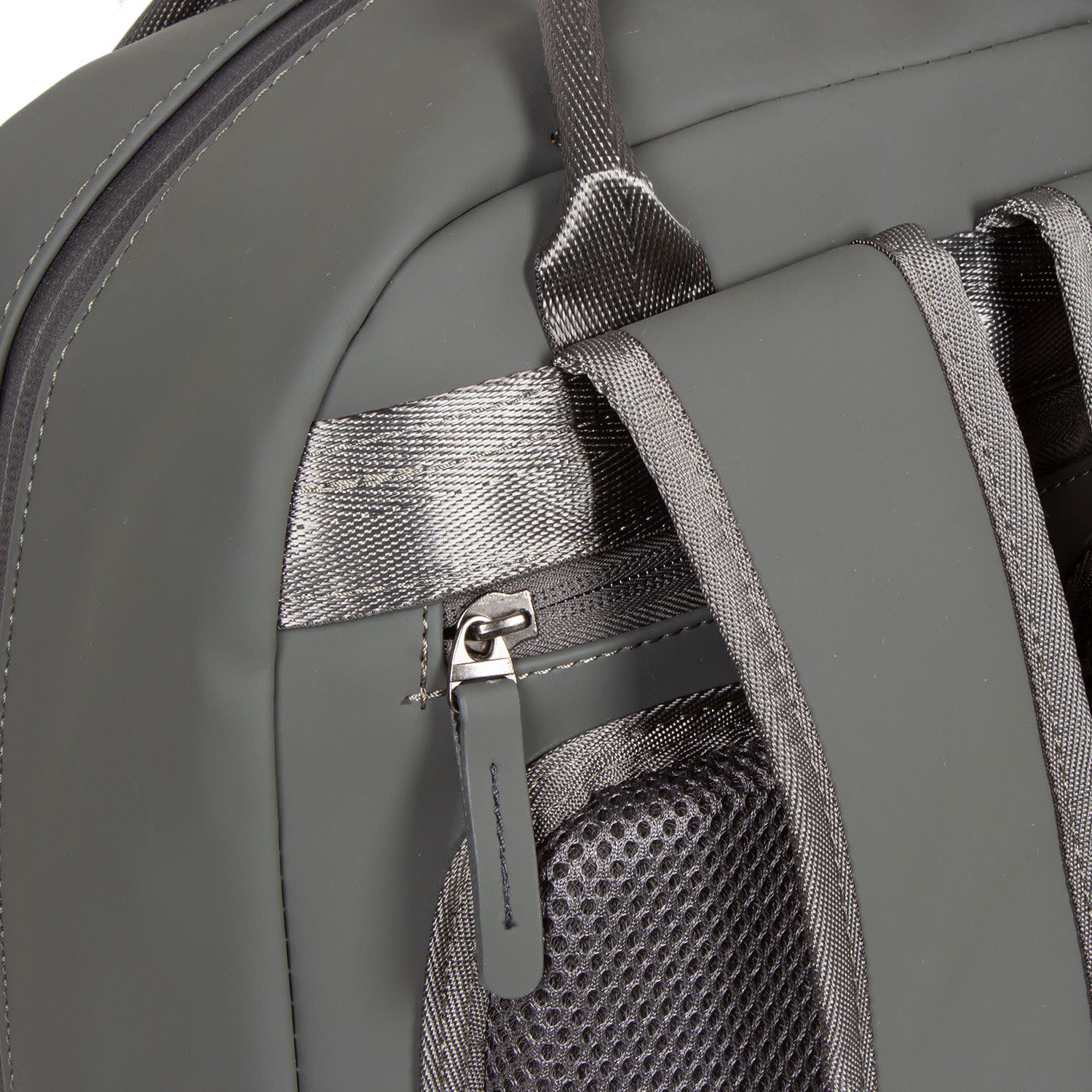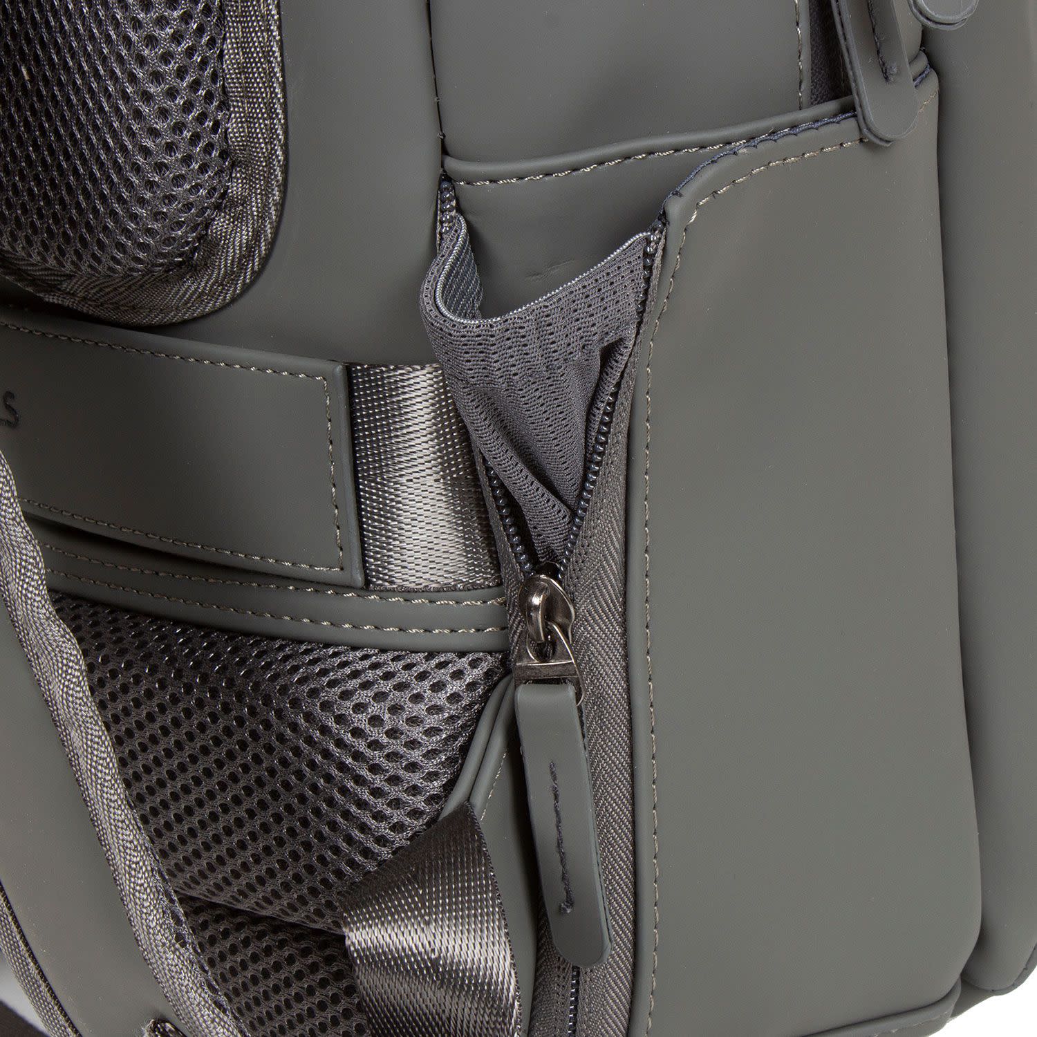 Διαθέτει μια μεγάλη κύρια θήκη, η οποία κλείνει με αδιάβροχο φερμουάρ, ενώ μέσα έχει επιπλέον μια τσέπη με φερμουάρ, μια τσέπη τηλεφώνου, μια τσέπη ολίσθησης και μια θήκη για φορητό υπολογιστή 13,3". Στο μπροστινό μέρος της τσάντας υπάρχει μια οριζόντια τσέπη με φερμουάρ και μια κάθετη τσέπη με φερμουάρ.