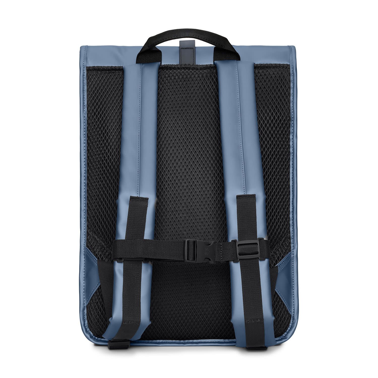 Το Rolltop Rucksack, μπλέ χρώματος, είναι ένα βασικό σακίδιο πόλης, ιδανικό για μετακινήσεις με ποδήλατο, πατίνι ή και με τα πόδια. Η εμφάνισή του χαρακτηρίζεται από ένα απτικό λουράκι, αλλά και το rolltop άνοιγμά του, που το κάνει πολύ… cool. Είναι κατασκευασμένο από αδιάβροχο ύφασμα PU με την υπογραφή της Rains, σχεδιασμένο για αντοχή, ανθεκτικότητα και απαλή αίσθηση. Διαθέτει πλευρική τσέπη για φορητό υπολογιστή 16", μπροστινή τσέπη με φερμουάρ και επένδυση στο πίσω μέρος, ώστε να μην αφήνεις τίποτα εκτός.
