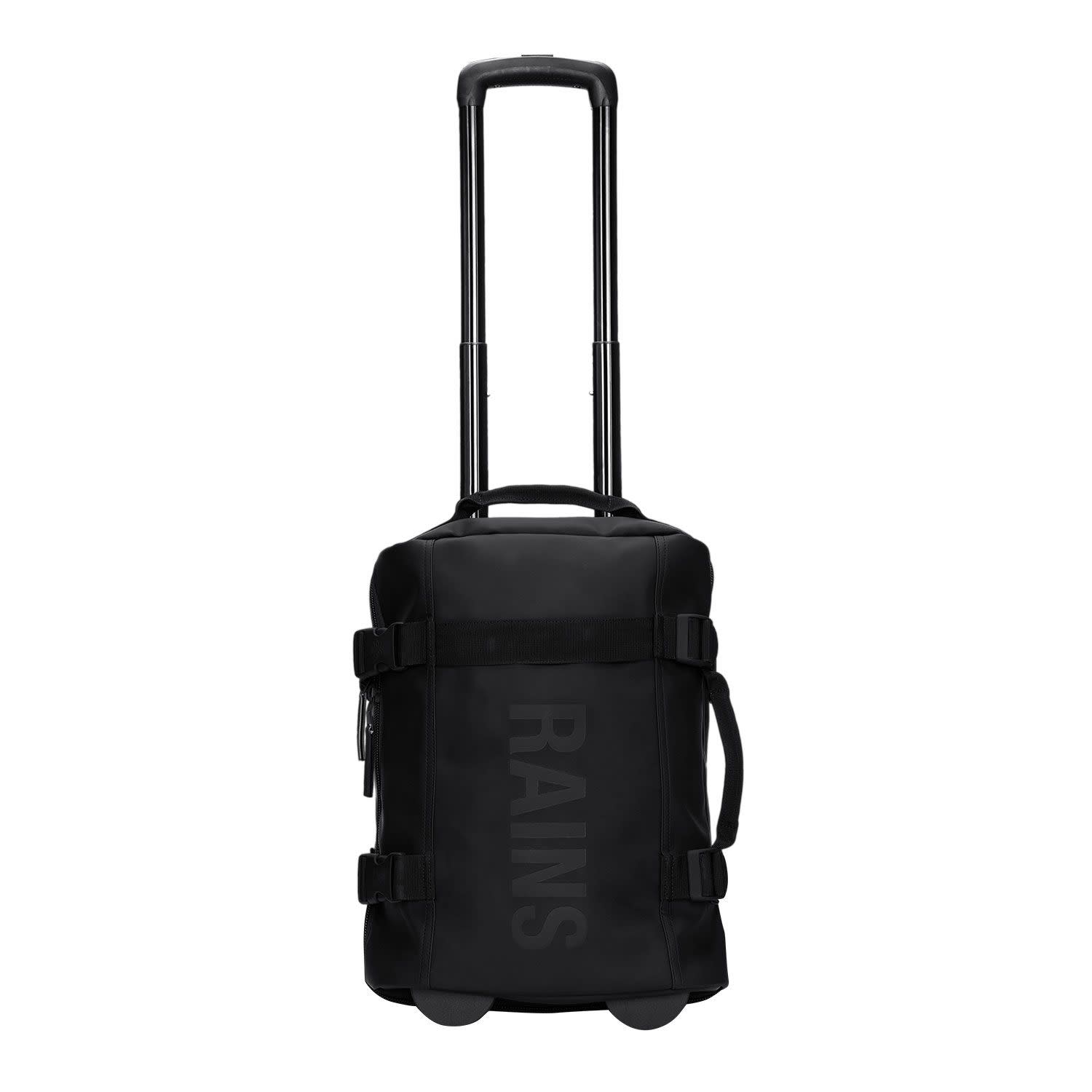 Μίνι βαλίτσα καμπίνας της Rains σε μαύρο χρώμα, μορφή trolley και διαστάσεις χειραποσκευής. Είναι αδιάβροχη, διαθέτει τηλεσκοπική λαβή καθώς και αθόρυβα ροδάκια για εύκολη μεταφορά!