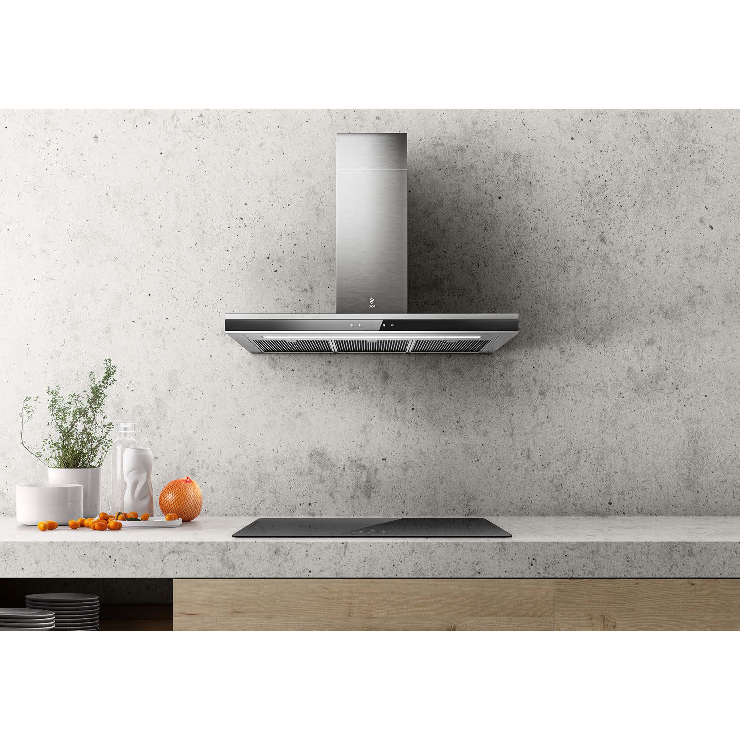 Κλασικός σχεδιασμός τζακιού, που εναρμονίζεται με κάθε στιλ κουζίνας, προσφέροντας ταυτόχρονα δυνατή απορρόφηση και κομψή παρουσία.
