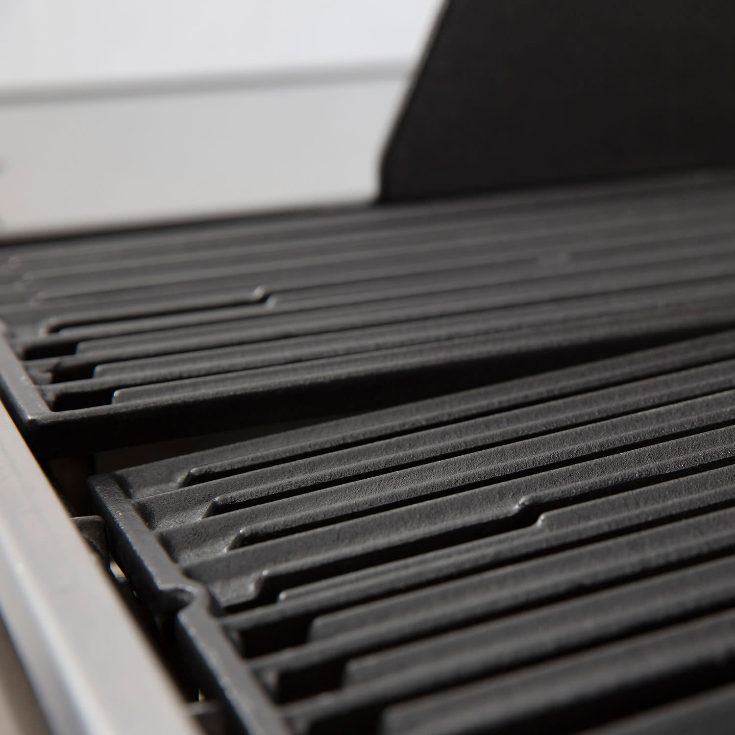 Οι μαντεμένιες σχάρες δύο όψεων θερμαίνονται άμεσα και διατηρούν αμείωτη τη θερμοκρασία ως το τέλος του ψησίματος. Η μία εξασφαλίζει την εικόνα του ξεροψημένου, ενώ οι άλλοι μέσω των καναλιών φροντίζει για τη διατήρηση της υγρασίας του φαγητού.