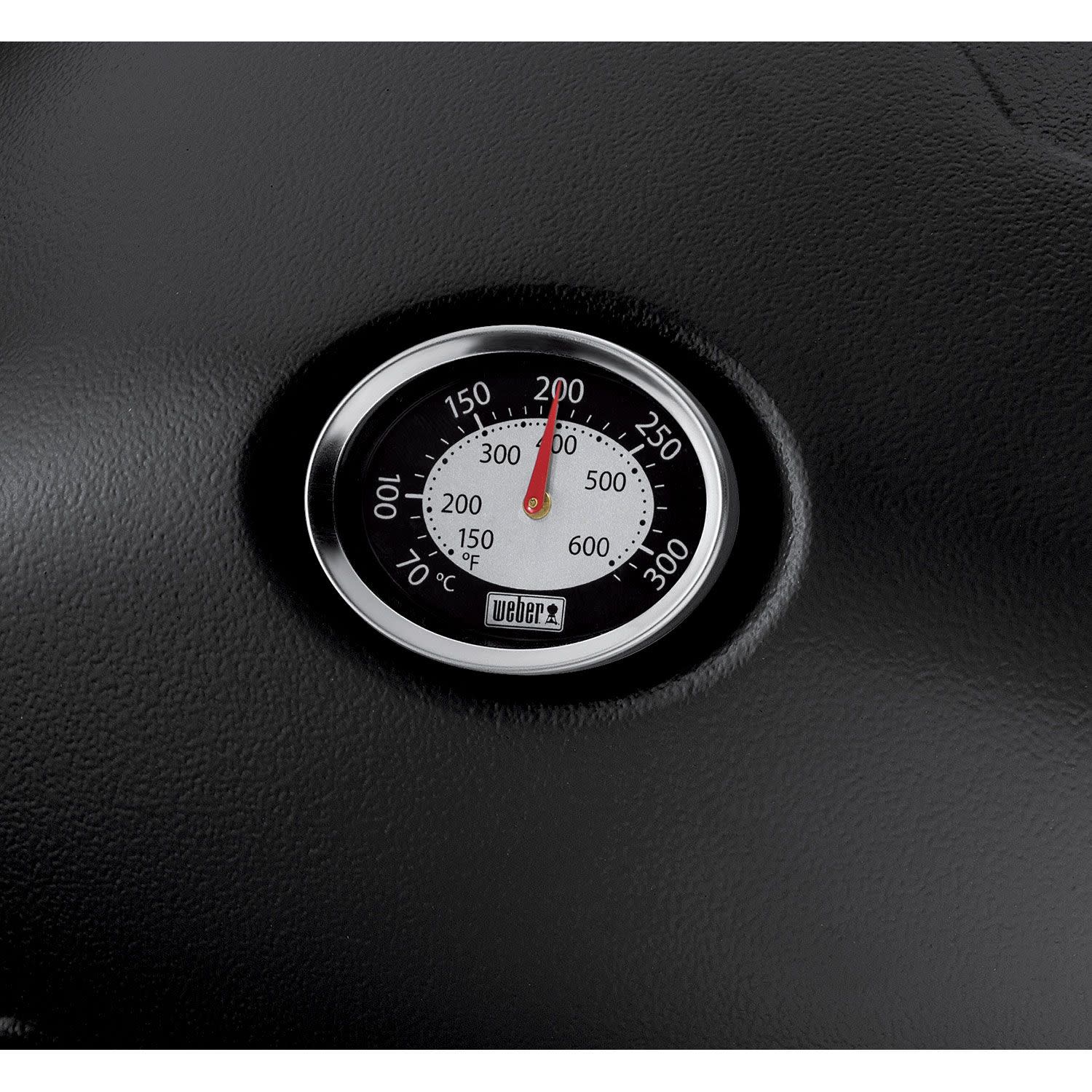 Η ψησταριά λειτουργεί με το μικρό φιαλίδιο weber και διαθέτει θερμόμετρο στο καπάκι για ακρίβεια στο ψήσιμο, πλαϊνά-αναδιπλούμενα τραπεζάκια και ταψάκι για την συλλογή του λίπους.