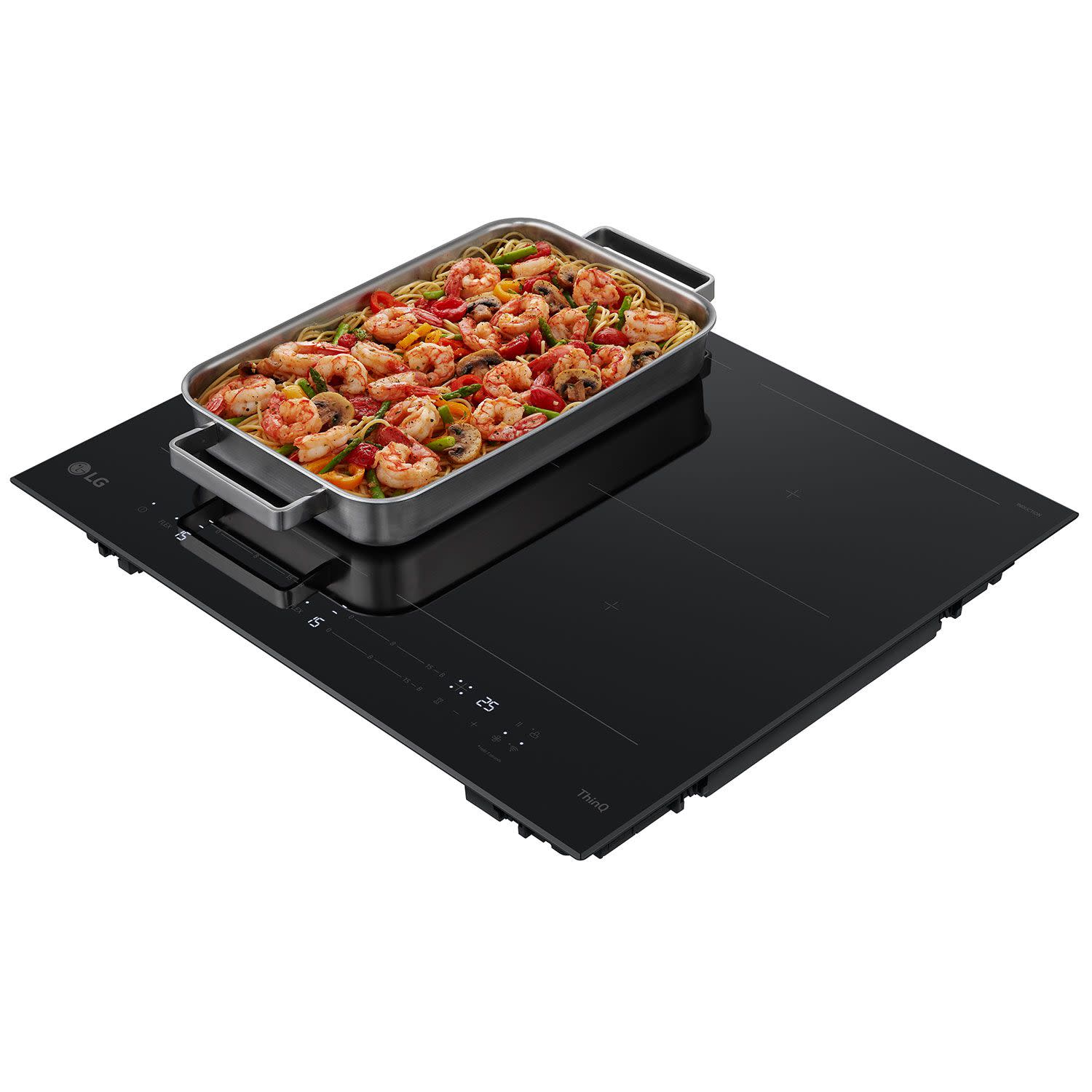 Επαγωγικές εστίες της LG με 2 ευέλικτες ζώνες που σου επιτρέπουν να χρησιμοποιείς μεγάλα σκεύη, εξασφαλίζοντας ομοιόμορφη κατανομή της θερμότητας.