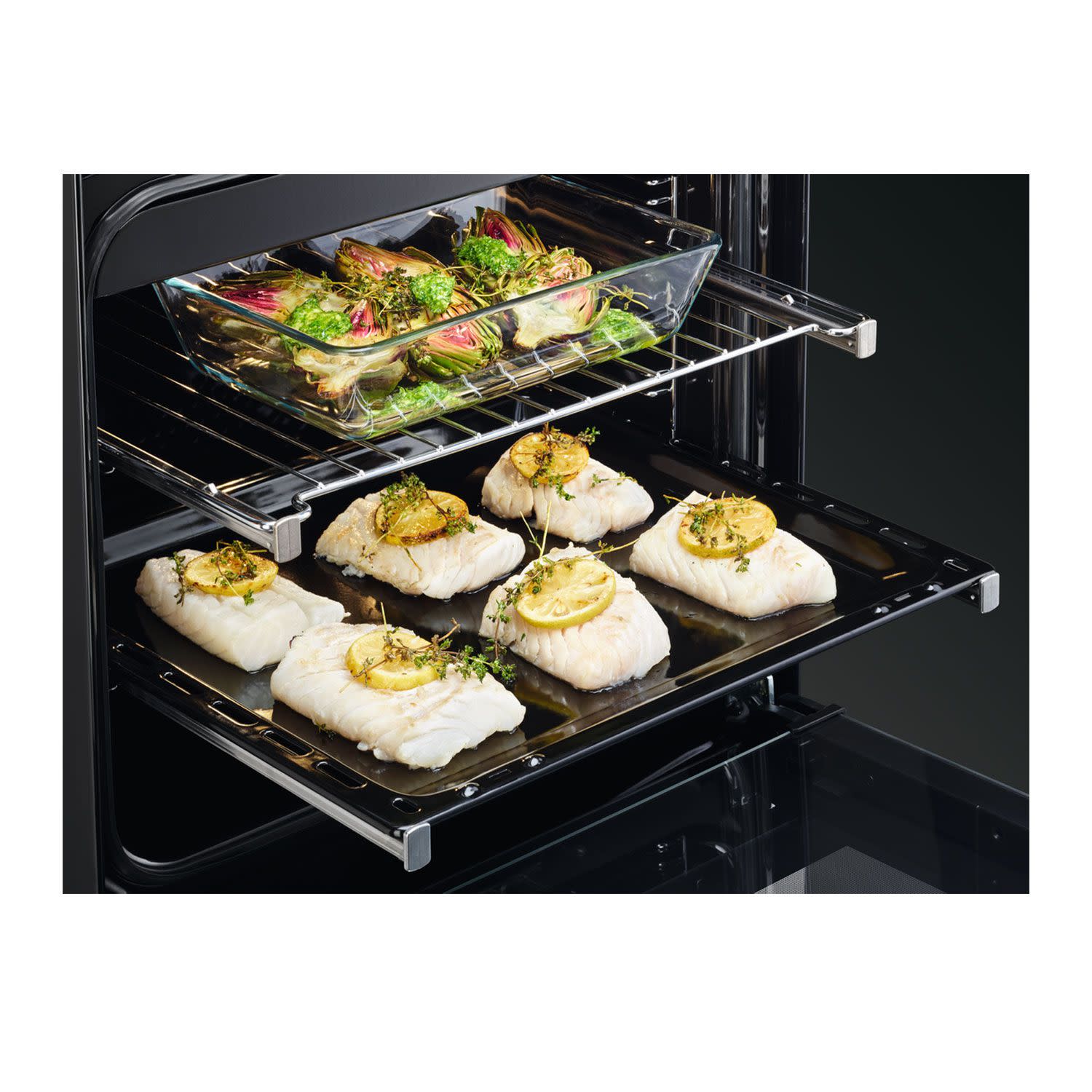 Κεραμική κουζίνα της AEG για ομοιόμορφο και γευστικό αποτέλεσμα ψησίματος. Καλύπτει τις ανάγκες όλης της παρέας, ενώ προσφέρει και extra χώρους με το συρτάρι αποθήκευσης μαγειρικών σκευών.