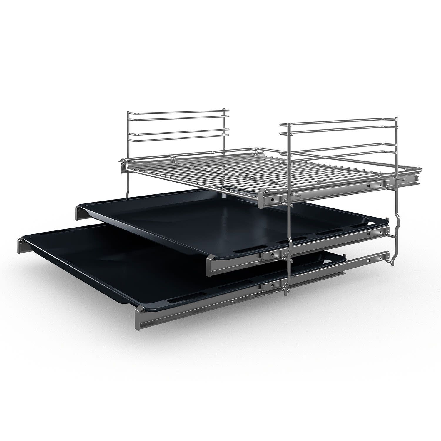 Ο τηλεσκοπικός μηχανισμός της Bosch 3 επιπέδων, σου επιτρέπει να ελέγχεις την πορεία του φαγητού, χωρίς τον κίνδυνο να ανατραπεί το ταψί και να βρεθεί το περιεχόμενο στο πάτωμα. Βάλε και βγάλε τα ταψιά σου από το φούρνο, εύκολα και με ασφάλεια!