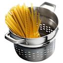 Σκεύος αποστράγγισης της AEG με μικρές οπές, για να το χρησιμοποιείς ακόμα και για τα πιο λεπτά spaghetti, χωρίς να έχεις καμιά απώλεια