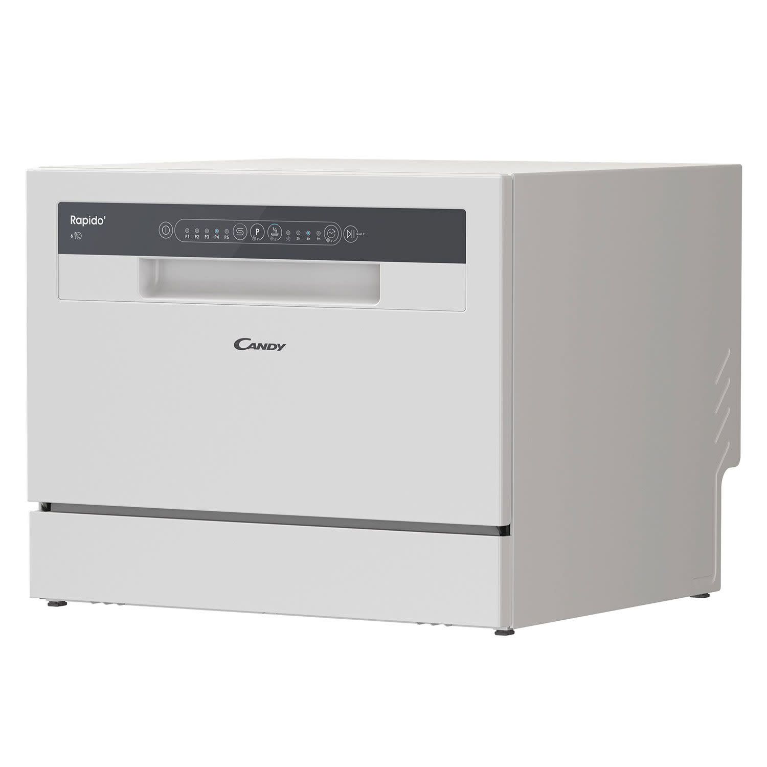 Το Candy Rapido είναι το μικρό πλυντήριο πιάτων άνω πάγκου που παρέχει την τέλεια λύση σε μικρές κουζίνες, όπου δεν υπάρχει χώρος για μεγαλύτερη συσκευή. Το compact μέγεθός του ταιριάζει απόλυτα και στους πιο μικροσκοπικούς χώρους της κουζίνας, ενώ επίσης έχει βελτιωθεί, ώστε να είναι πιο αποτελεσματικό και έξυπνο, διαθέτοντας έναν αριθμό γρήγορων κύκλων και λειτουργιών που στοχεύουν στη διευκόλυνση της καθημερινότητάς σου.