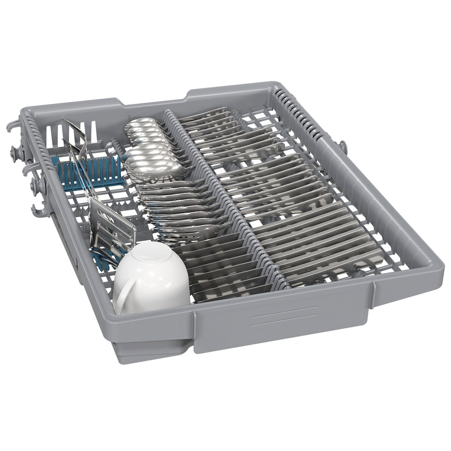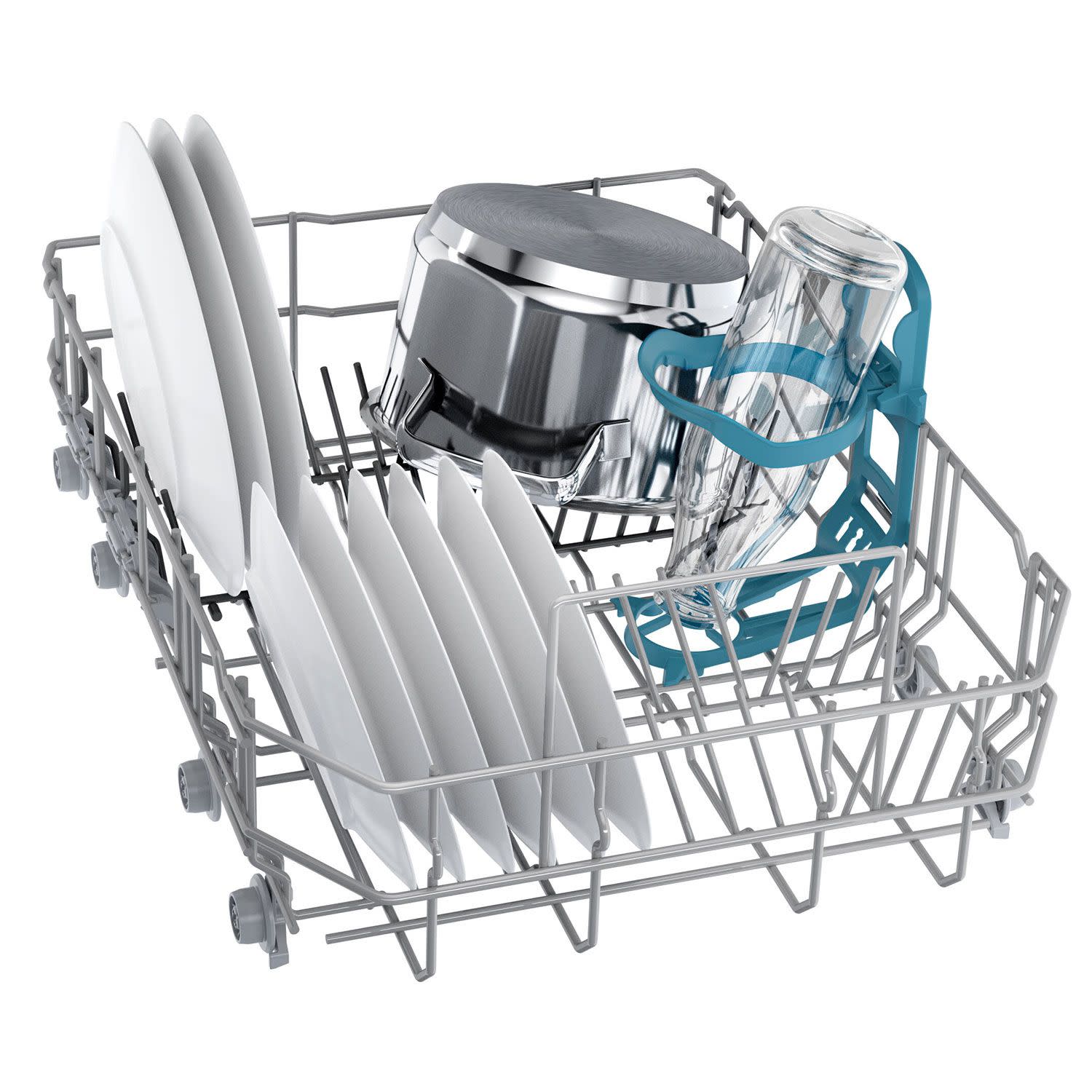 Διαθέτει πτυσσόμενο άνω καλάθι, το οποίο αυξομειώνεις με μία κίνηση. Έτσι αλλάζεις το ύψος του καλαθιού και διαμορφώνεις το εσωτερικό του πλυντηρίου προκειμένου να χωρέσει ακόμα και τα μεγαλύτερα σκεύη που έχεις στην κουζίνα σου.