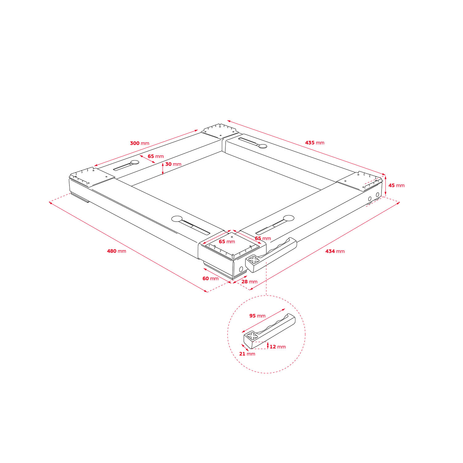 Με εύρος διάστασης 37-62cm, αυτή η βάση στήριξης της Roller είναι κατάλληλη για κάθε πλυντήριο και στεγνωτήριο, αφού προσφέρει ευελιξία και σταθερότητα στην τοποθέτηση!