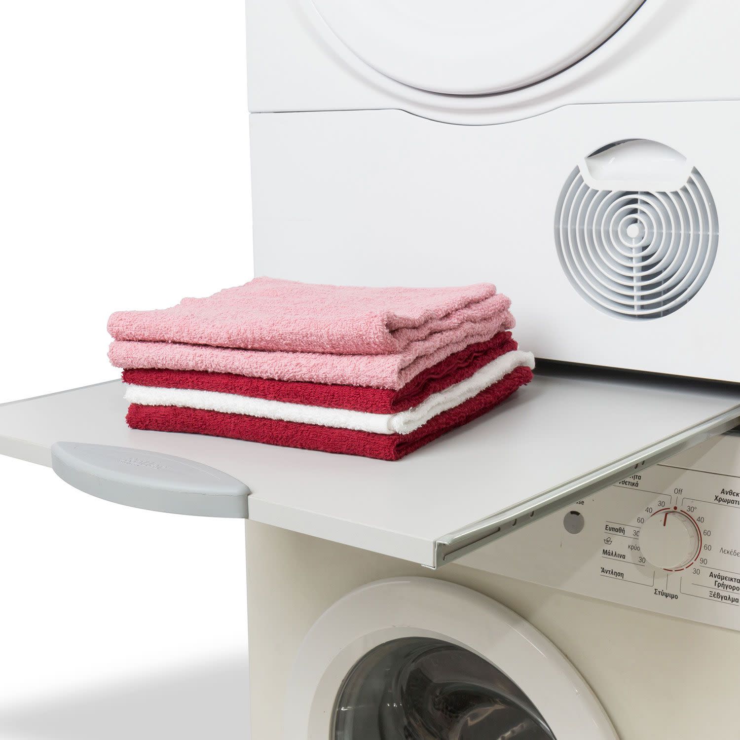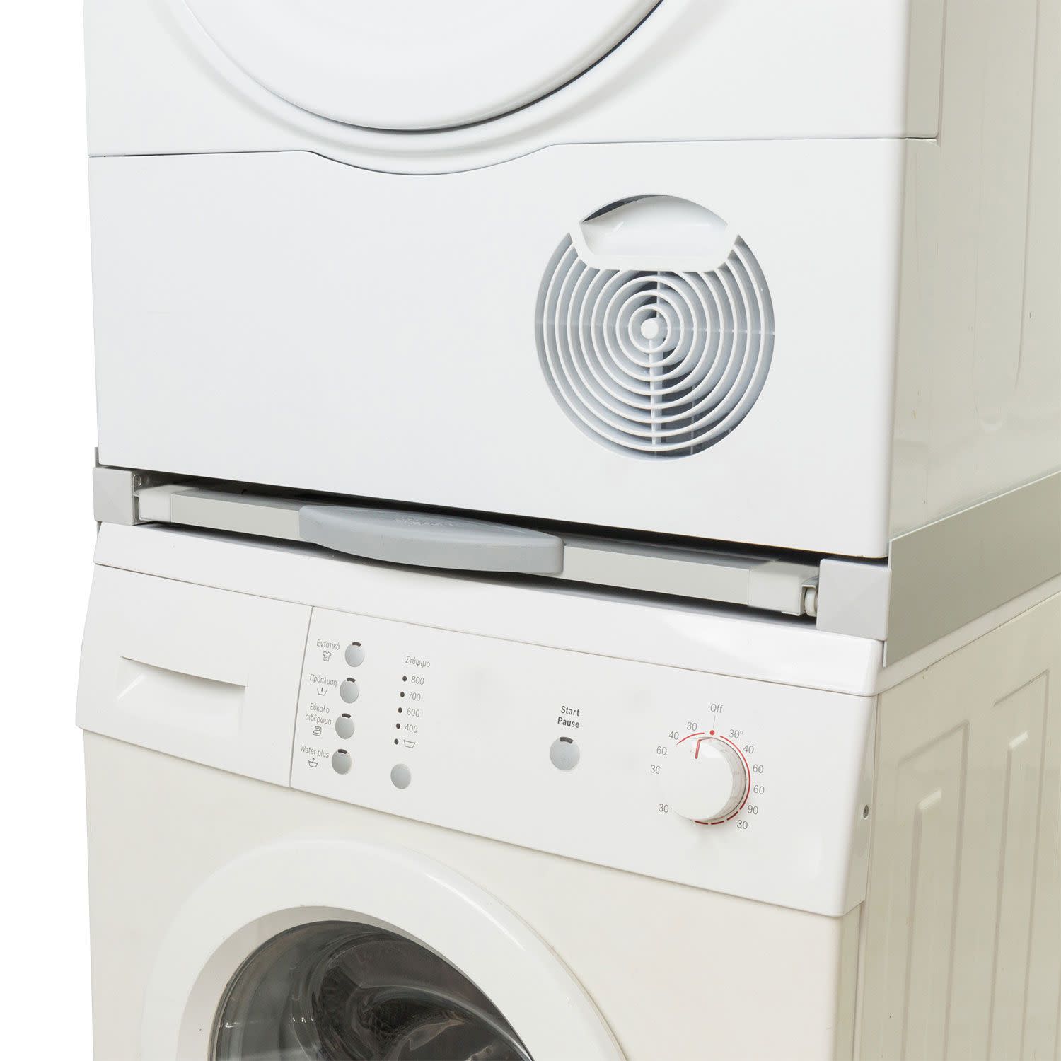 Σύνδεσε πλυντήριο και στεγνωτήριο κάθετα, ώστε να εξοικονομήσεις χώρο, εκμεταλλευόμενος το ύψος και όχι τα τετραγωνικά μέτρα του χώρου σου.