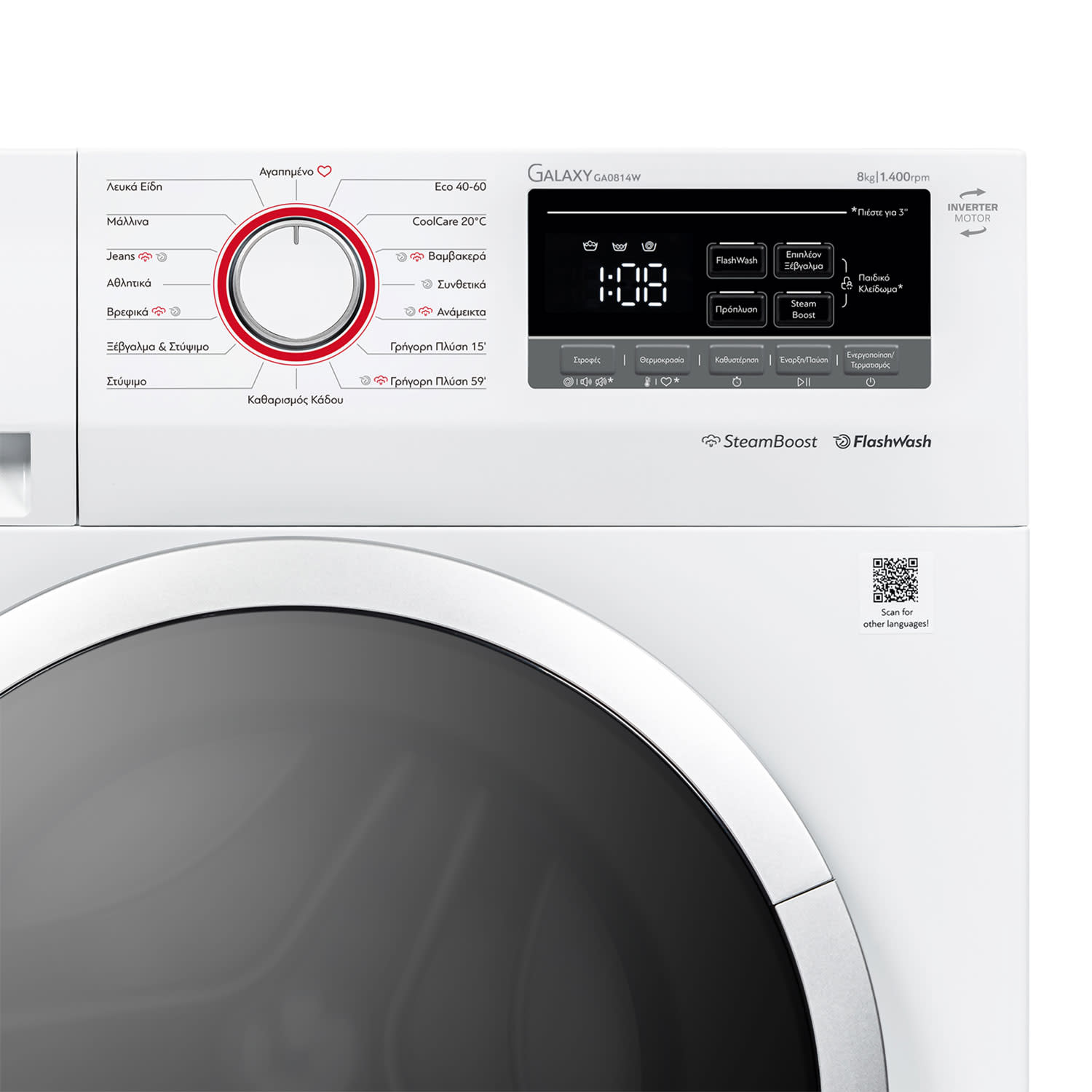 Με 16 διαφορετικά προγράμματα, το μόνο που δεν πλένει είναι τα... νεύρα σου! Έχει CoolCare 20°C για τα αγαπημένα σου ρούχα που θες να παραμείνουν αστραφτερά και μαλακά, FlashWash για να τα έχεις έτοιμα πριν τελειώσεις τον καφέ σου, και SteamBoost, που εξολοθρεύει τα μικρόβια χωρίς να ταλαιπωρεί τα υφάσματα!
