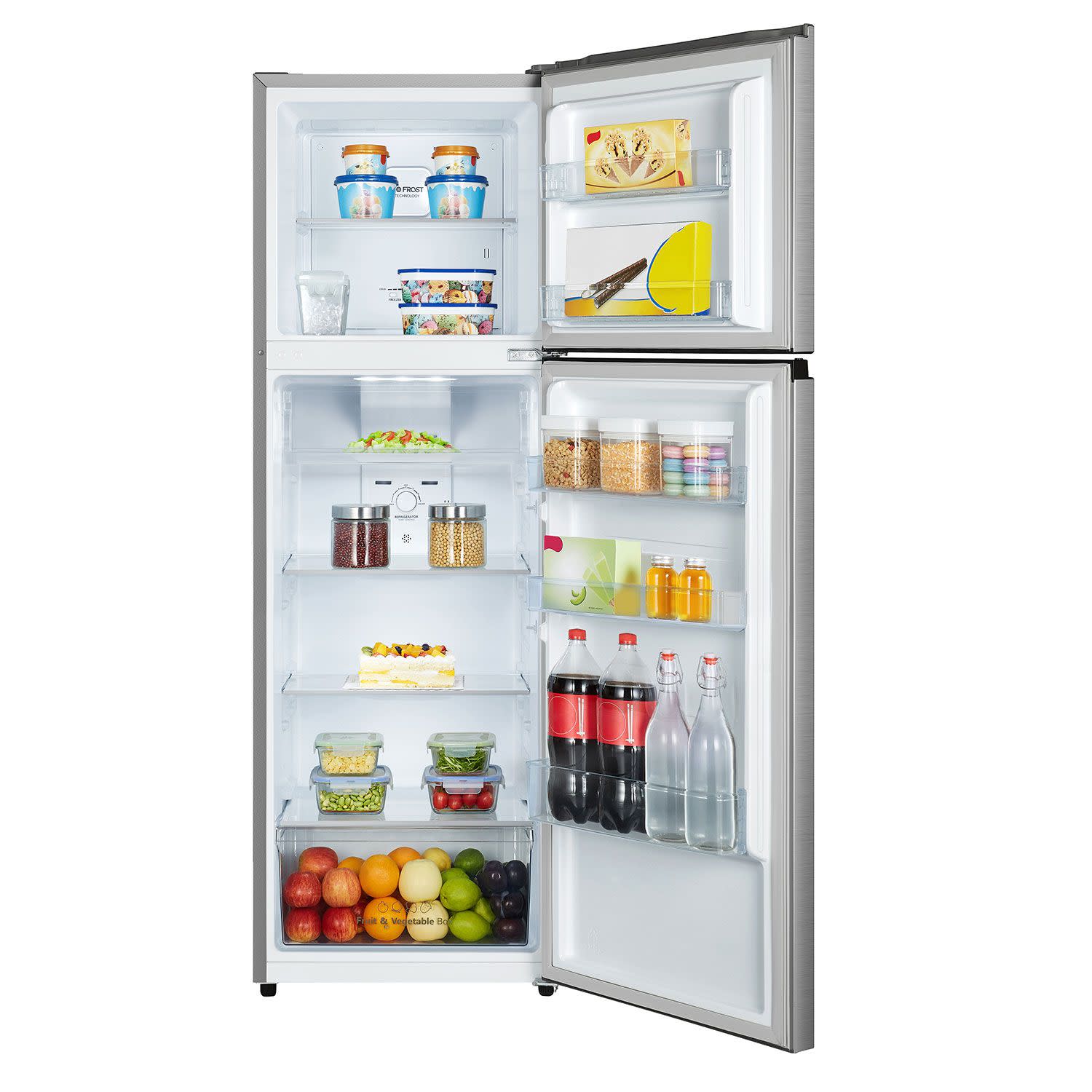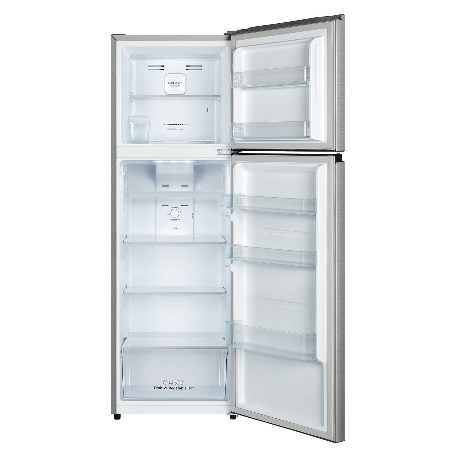 Δίπορτο ψυγείο Hisense καθαρής χωρητικότητας 249Lt, με multiAirflow για ομοιόμορφη κατανομή της ψύξης και ειδικό συρτάρι για να αποθηκεύεις τα φρέσκα τρόφιμα.