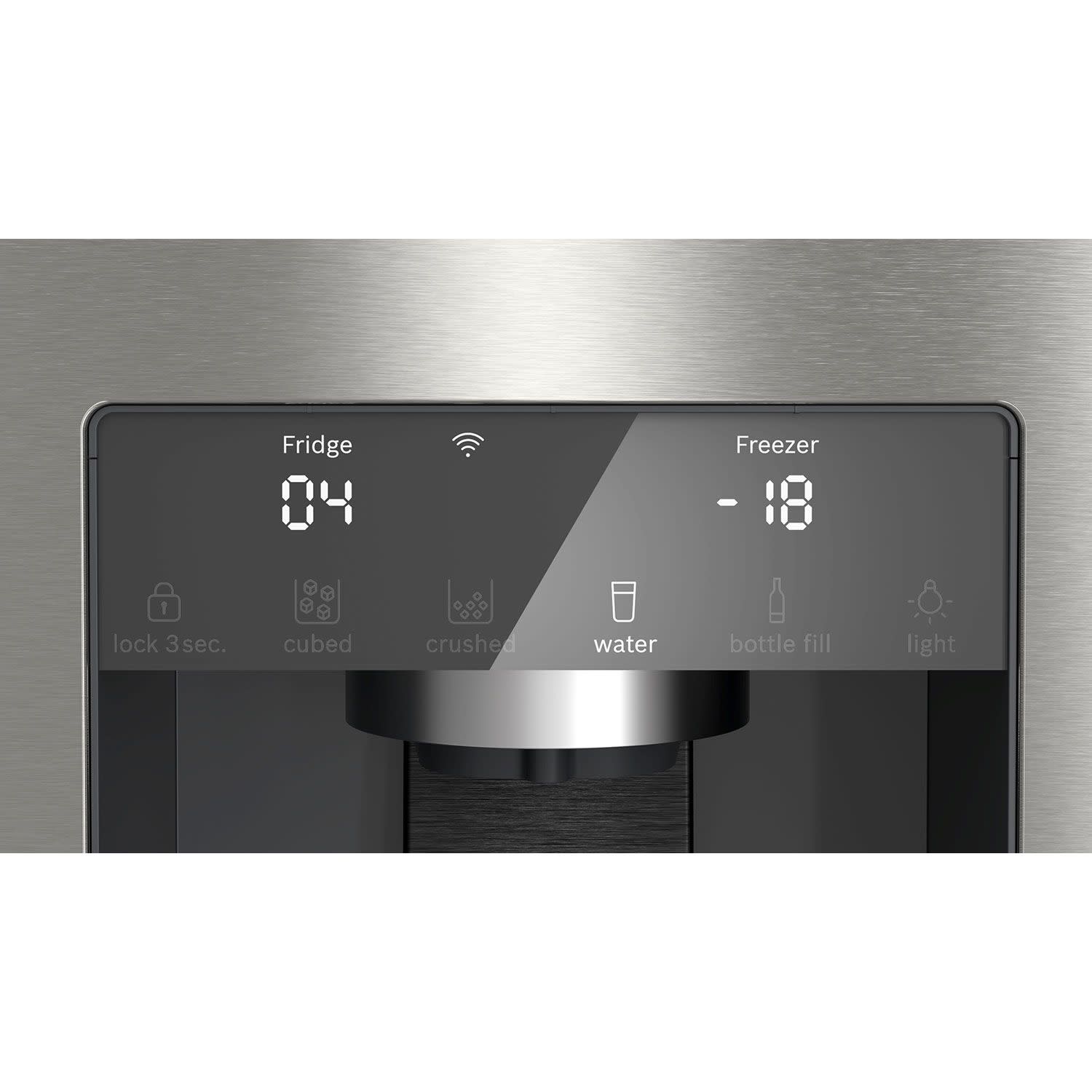 Ντουλάπα Bosch με χωρητικότητα 574Lt, σύστημα Dynamic MultiAirFlow για ομοιόμορφη κατανομή του ψυχρού αέρα και διανομέα νερού & πάγου για να σερβίρεις δροσερό νερό απευθείας στο ποτήρι σου!